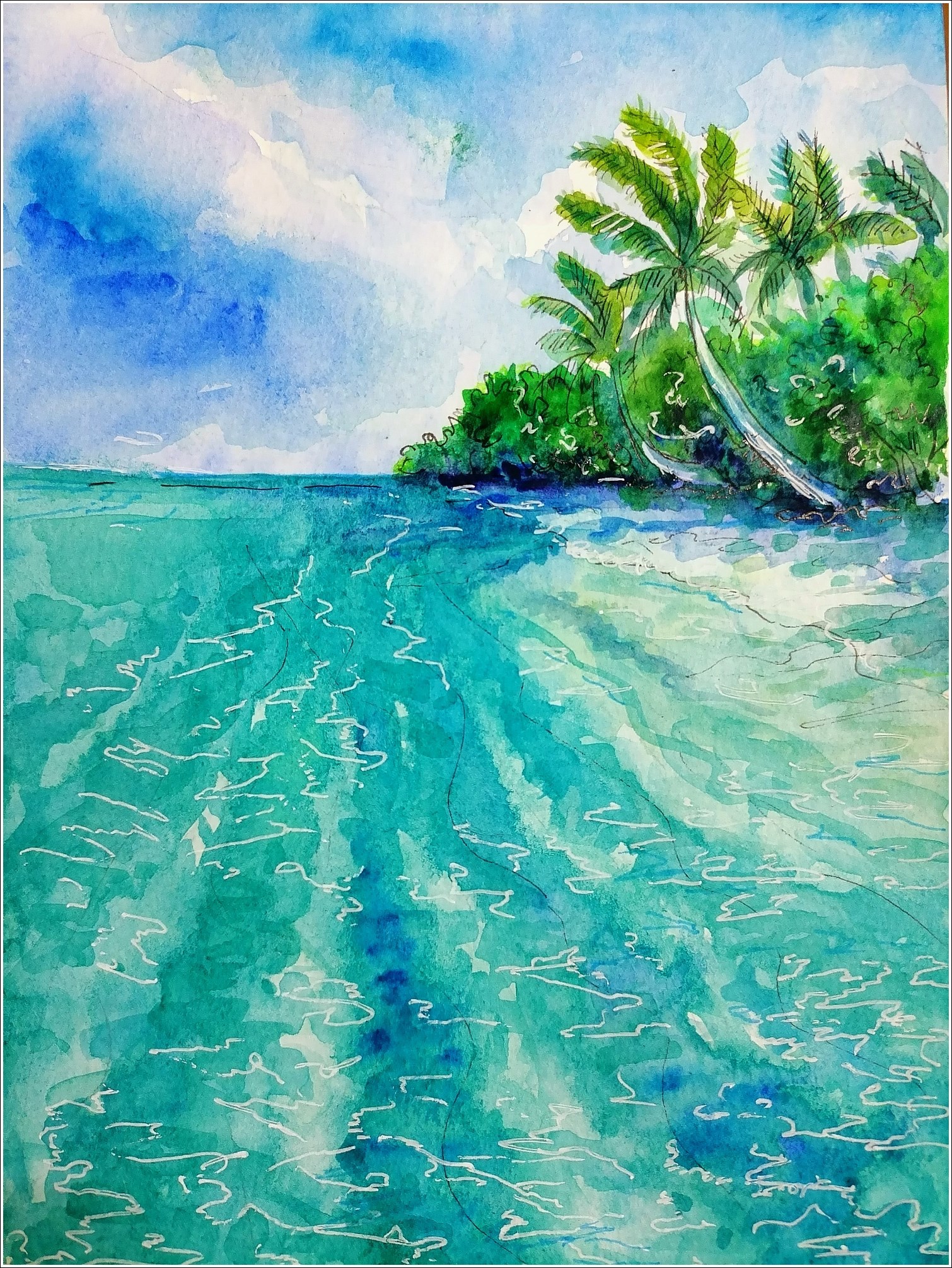 Карибское синее море Автор: NaToth Акварельный скетч, просто захотелось моря... море акварелью, акварельный скетч 150 Пожаловаться