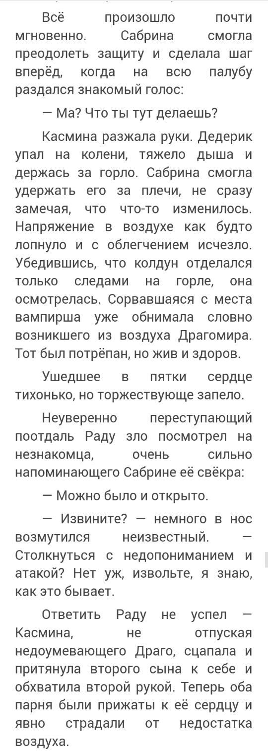К месту событий весьма неожиданно прибывает госпожа регент Империи - а по совместительству матушка Драгомира - собственной персоной, чтобы ему помочь, но узнает, что оба ее сына остались на острове... и приходит в отчаяние. Однако никто не успел серьезно пострадать)))