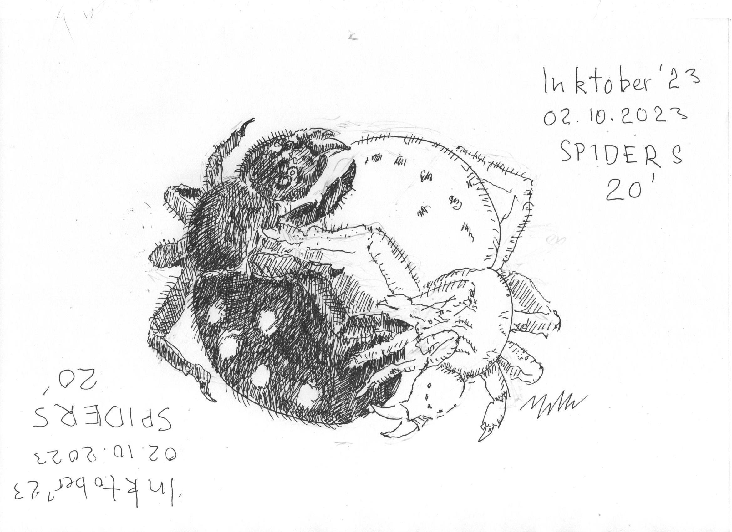 Пауки Автор: Вадим Чичерин С утра сегодня потратил часок на пару иллюстраций. День 2. Пауки. рисунок, inktober2023 183 Пожаловаться