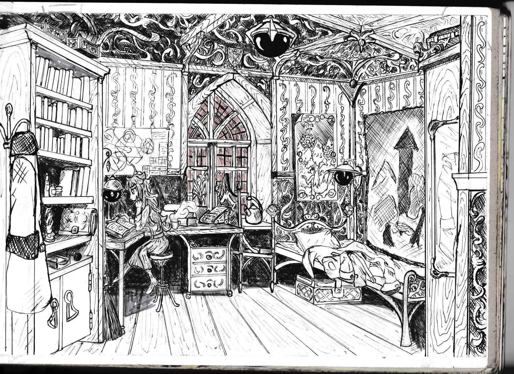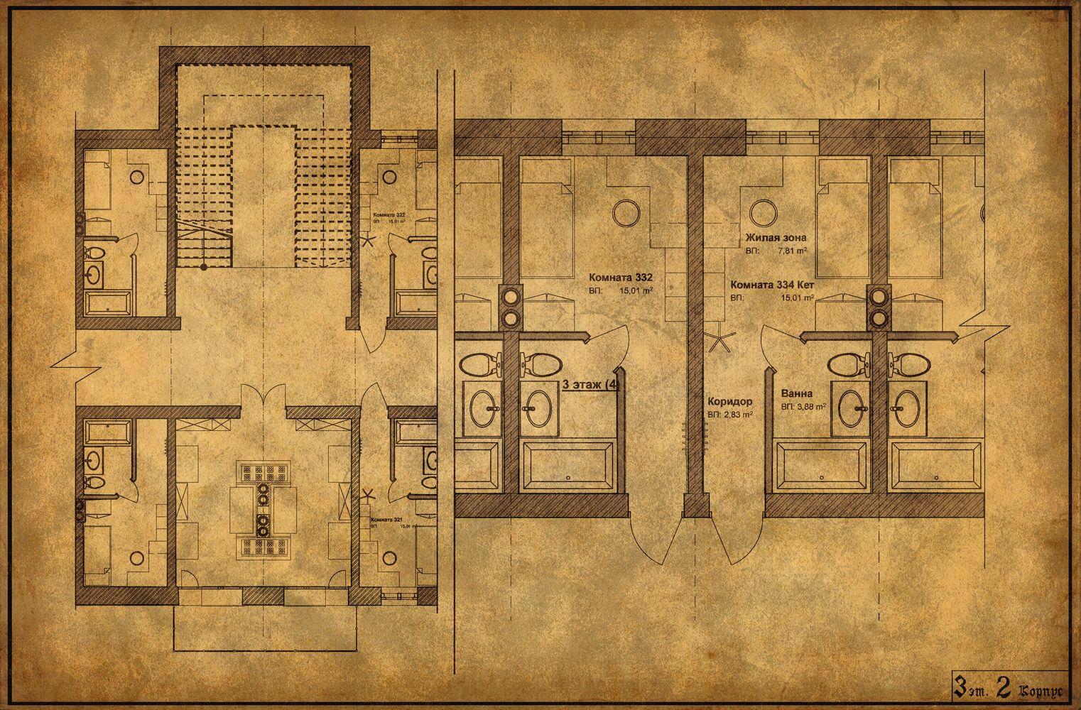 К слову к арту в придачу идет план комнаты, собственно ориентируясь на который я и рисовал. Камера стоит за вешалкой (комната 334)