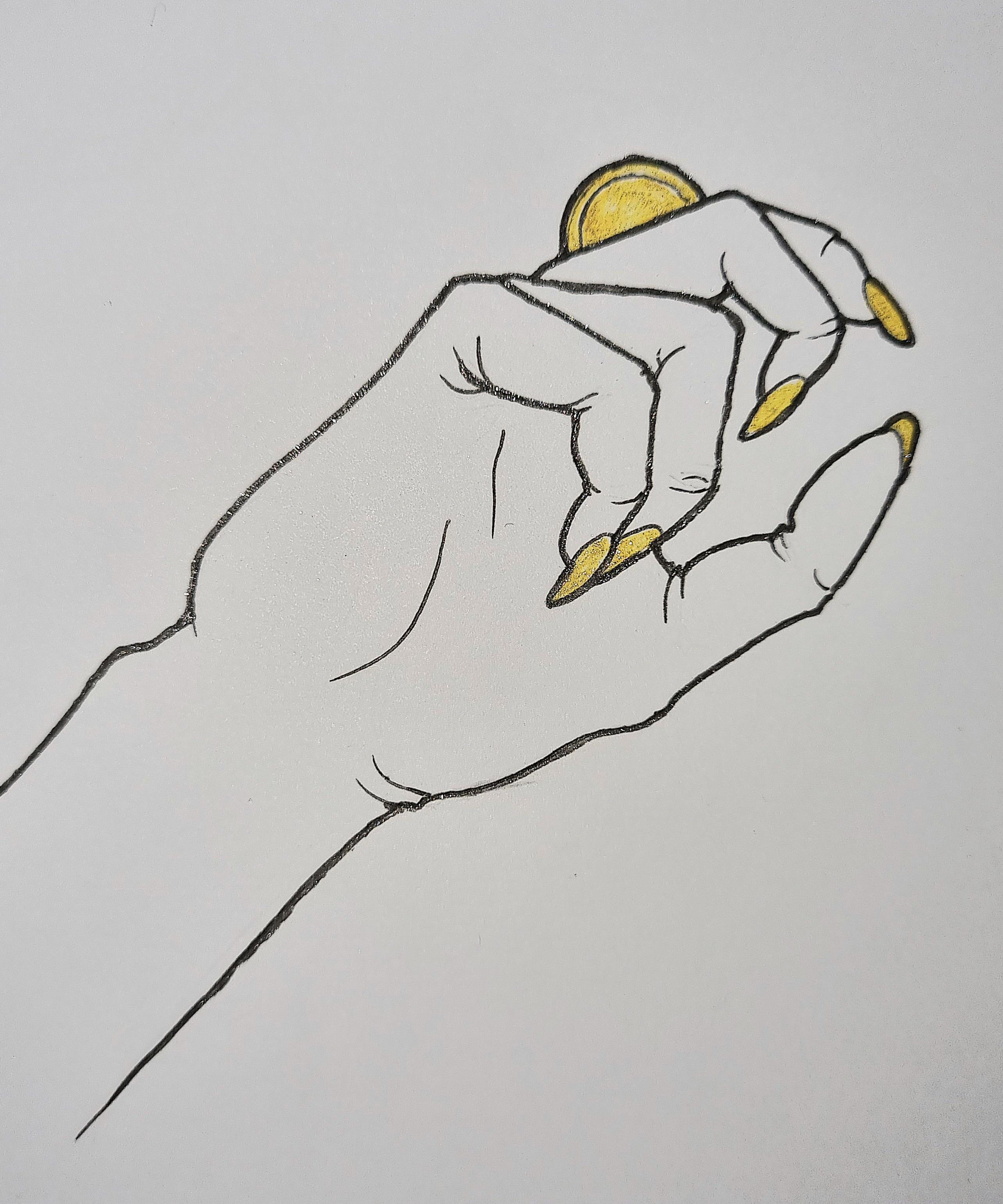 Но потом решила, что это скучновато и к монете, традиционно пририсовался мужик.