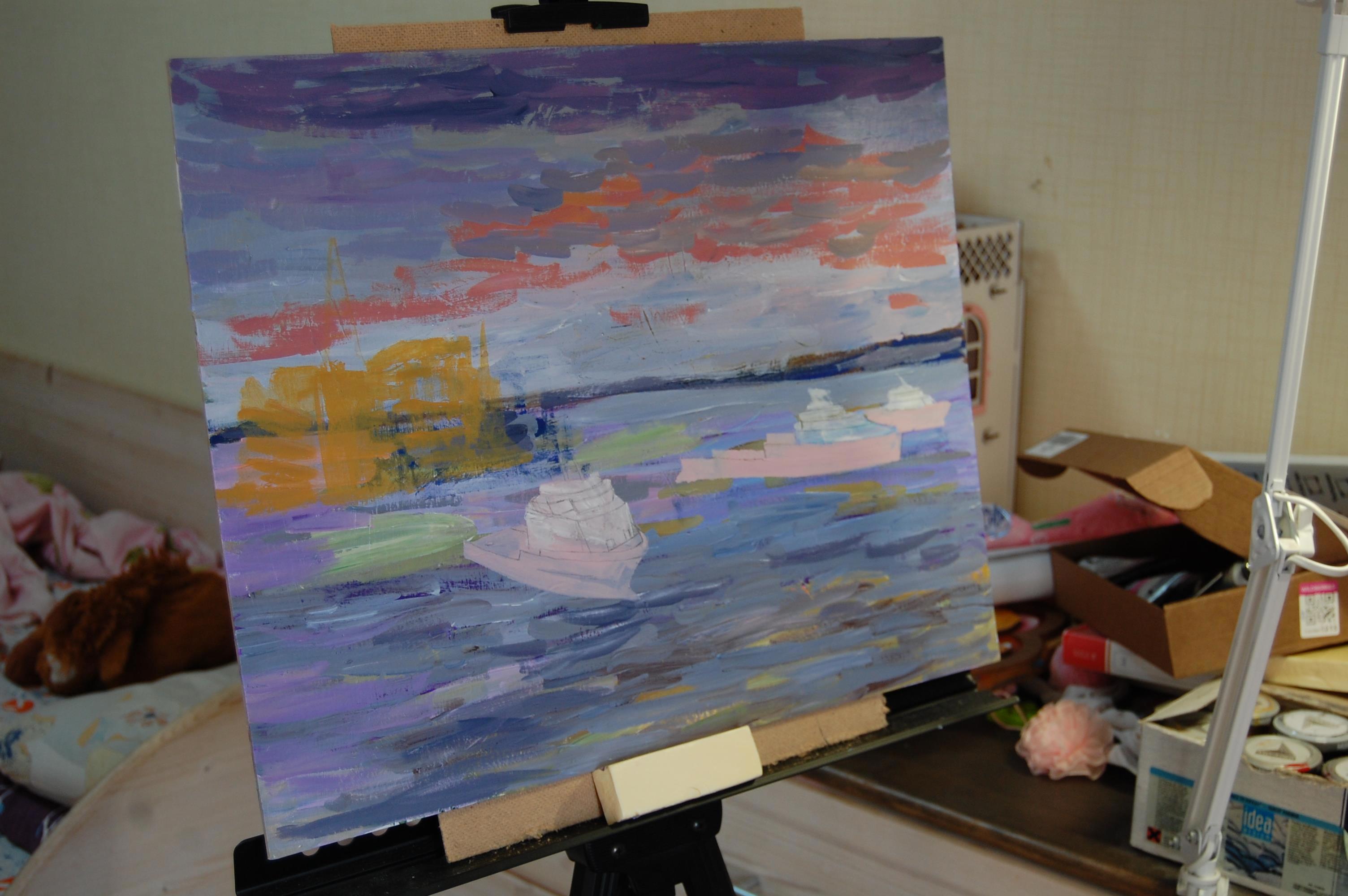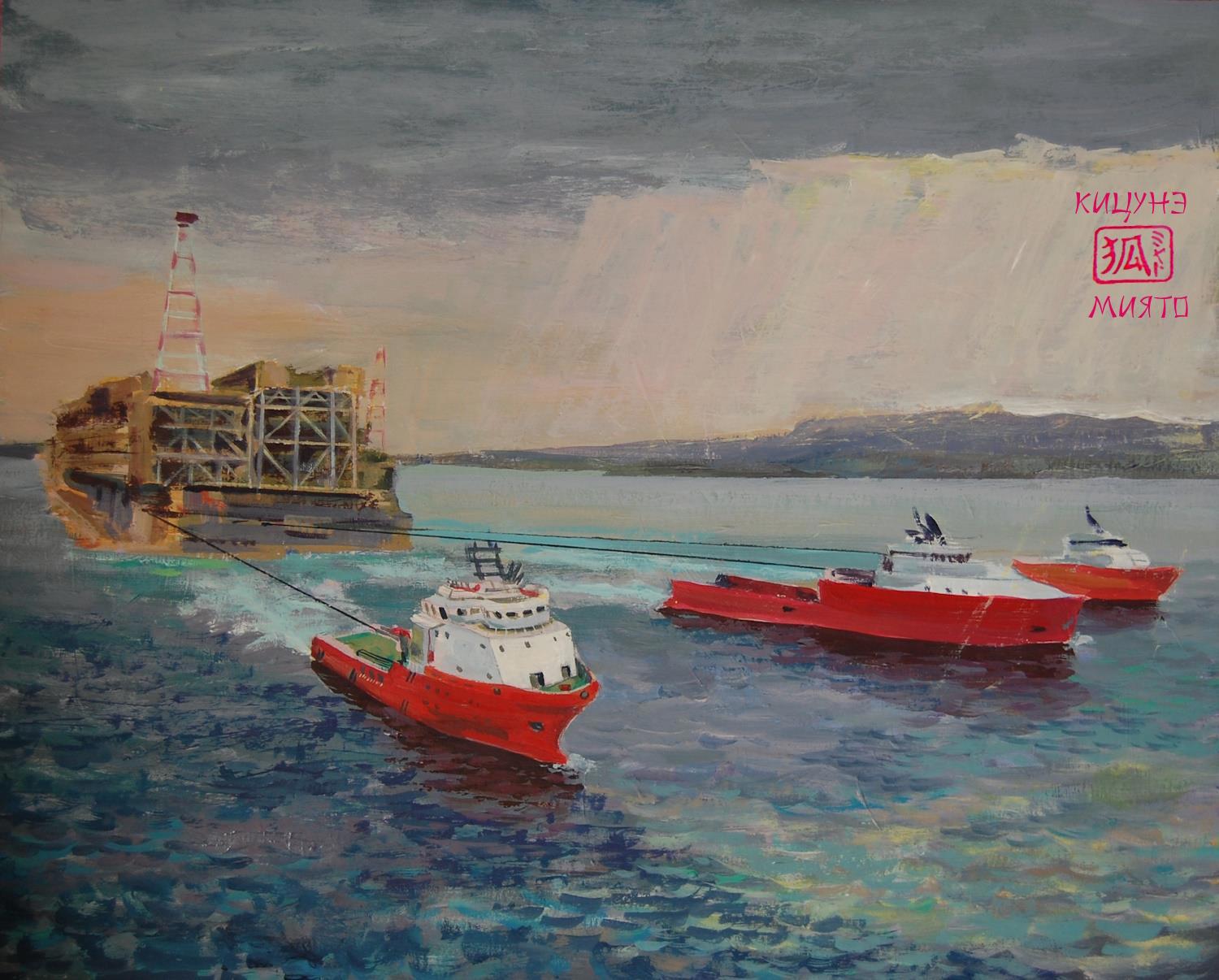 а ещё я сначала (хотя и не увидела их но) пририсовала тросы, шоб понятно было что тащщщат, стОраются , но мне сказали, что так не надо. И тросы под водой.