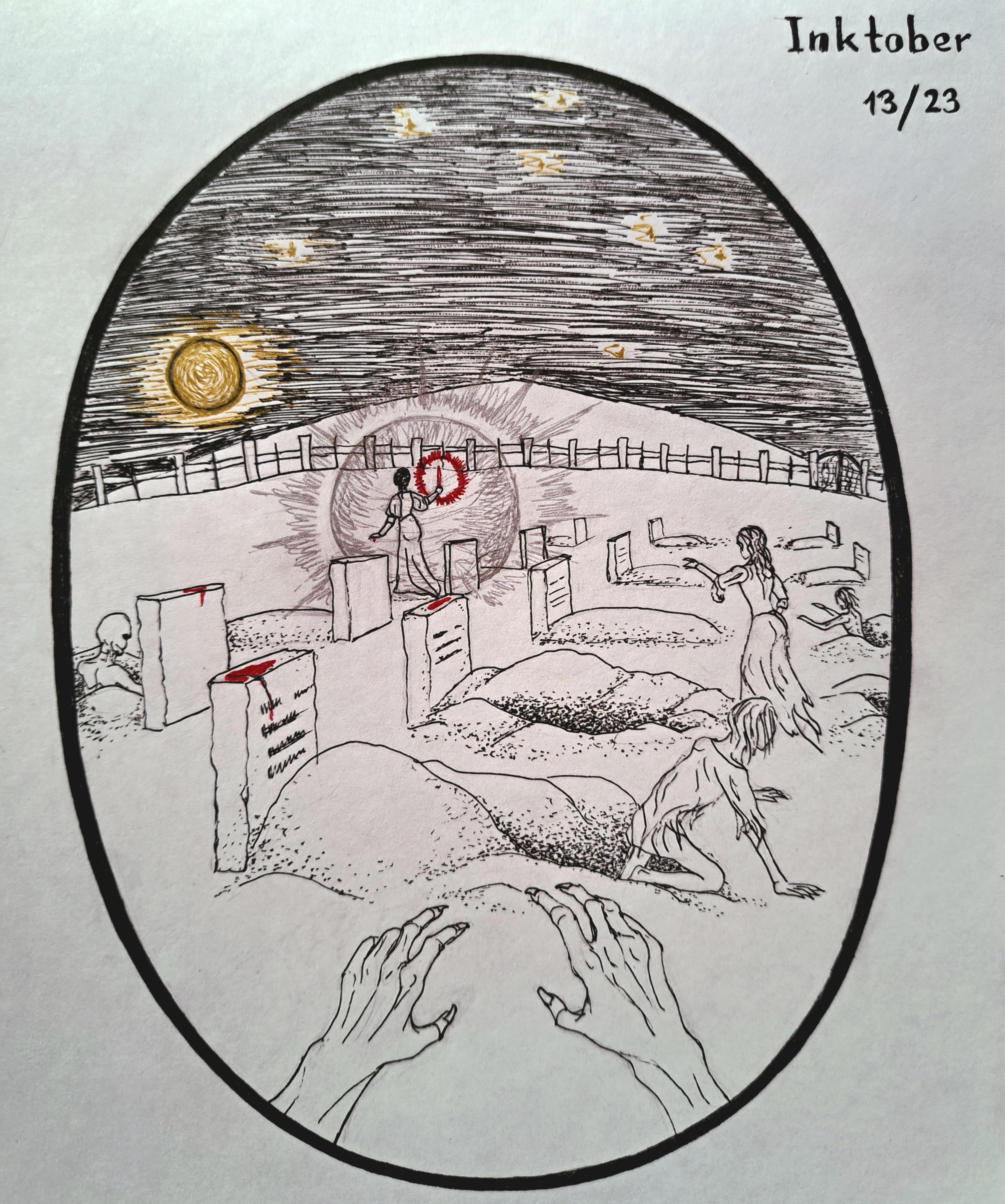 Rise Автор: Rshaat Здесь я недолго думала что же нарисовать:)Приложу еще в другом варианте обработки inktober2023, гелевые ручки 221 Пожаловаться