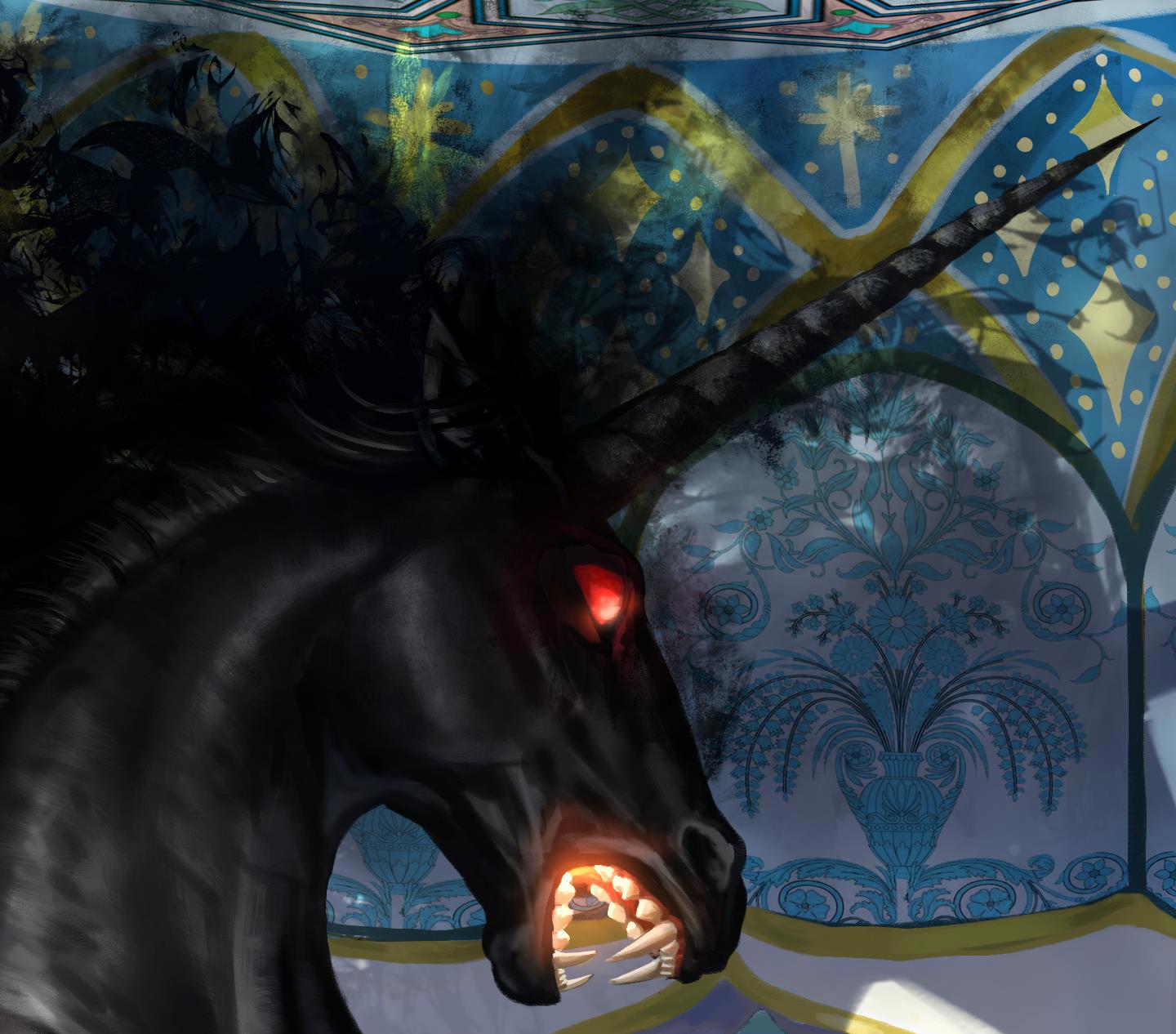 Эмир затрясся и попытался отползти за трон, но огромное копыто опустилось и поднялось, с влажным хрустом оставив на полу золотую лепёшку, из-под которой растекалось кровавое пятно. Тёмноокий безжалостно карал тех, кто нарушал его законы.