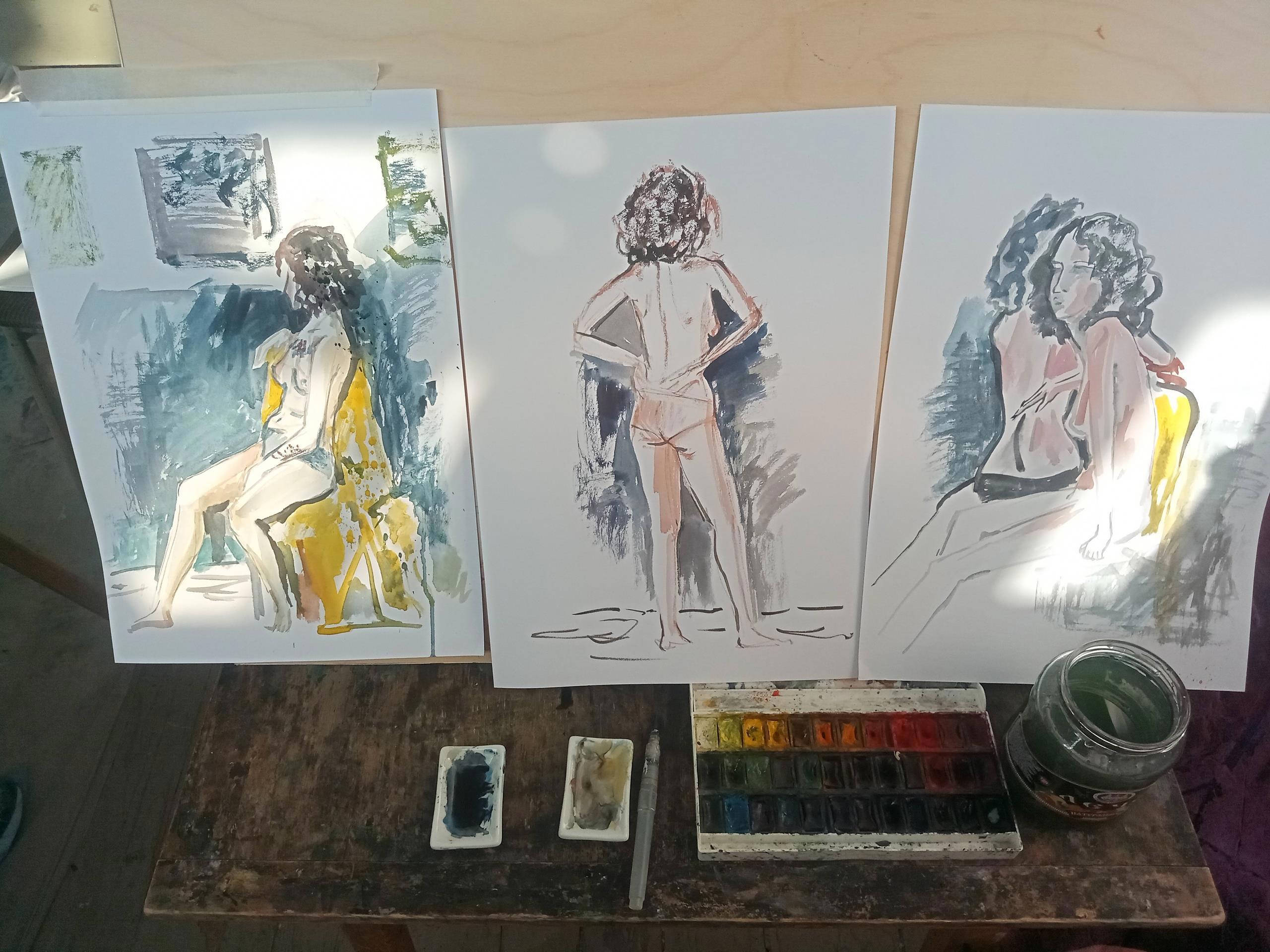 И вот таким я временами балуюсь акварелью на бумаге. 15-минутные зарисовки.