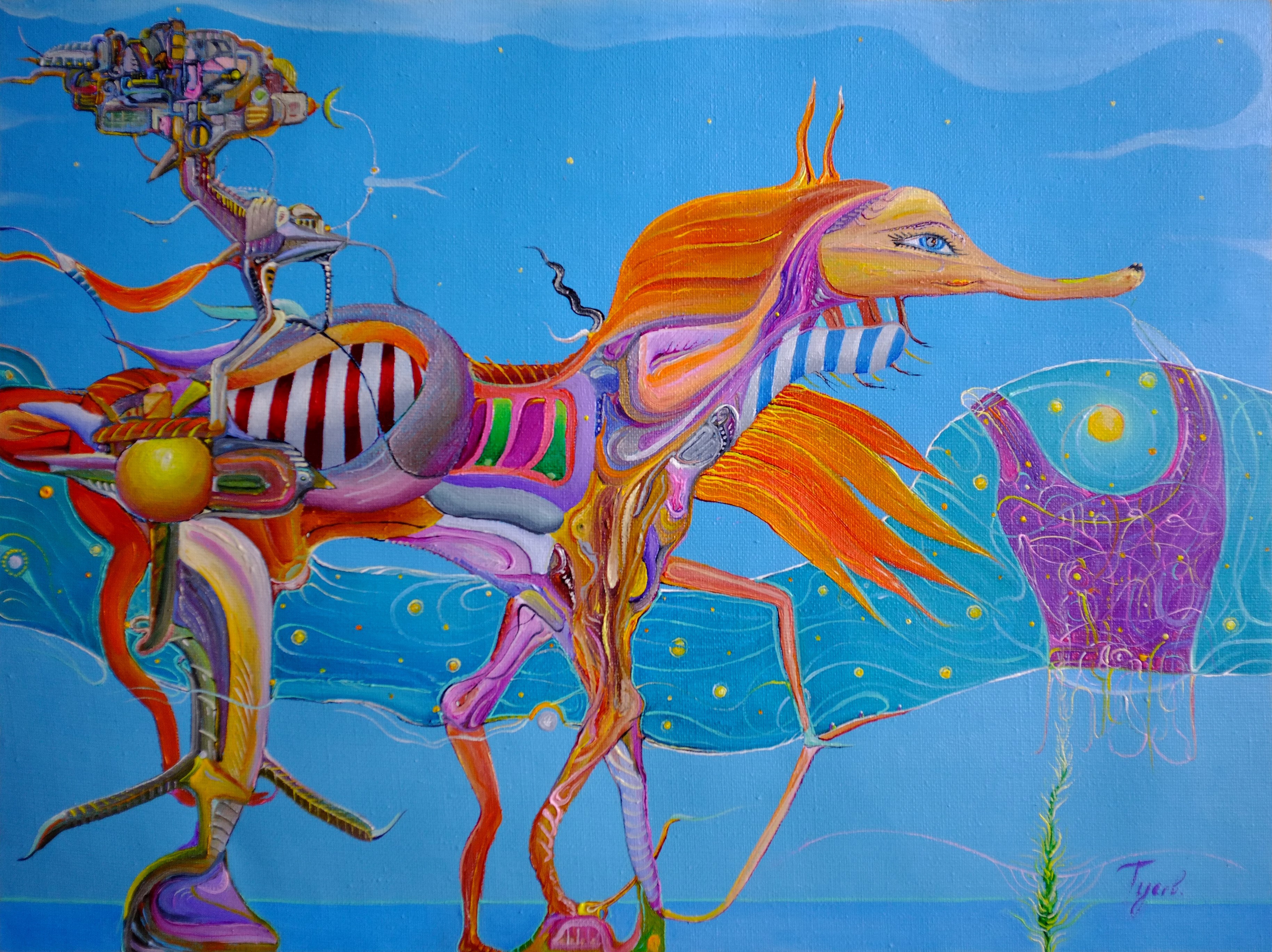 Мы все здесь любимые, все победители, всем есть место под танцующими над морем в ночи снежинками, пока отражение гармонично не соберет своей белоснежной грудью чайка, прочертив водную гладь. Словно взгляд над кружкой с горячим напитком, добрый, в пространстве, пронизанном неким количеством всего, а также снами любимых и родных людей, памяти, встреч и всё себе... "Куда-то идёт" холст, масло, 30х40