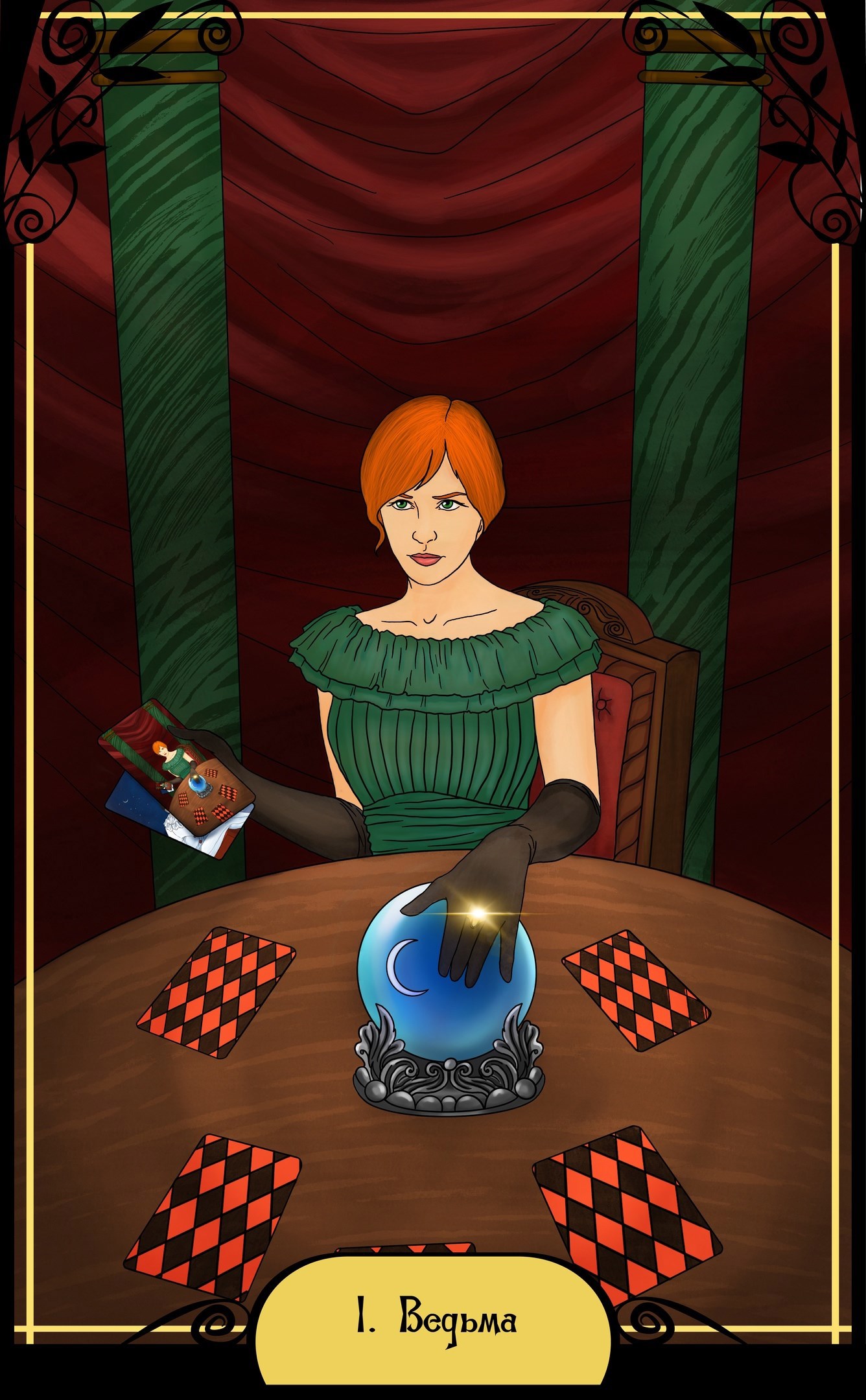 Аркан "Ведьма" Автор: Анна Веневитинова Работа Lauremor. Иллюстрация к "Формуле Распутина".Персонаж - Инга Дэвис.Визуальный прототип - Келли Райлли. таро инги дэвис, формула распутина 384 Пожаловаться