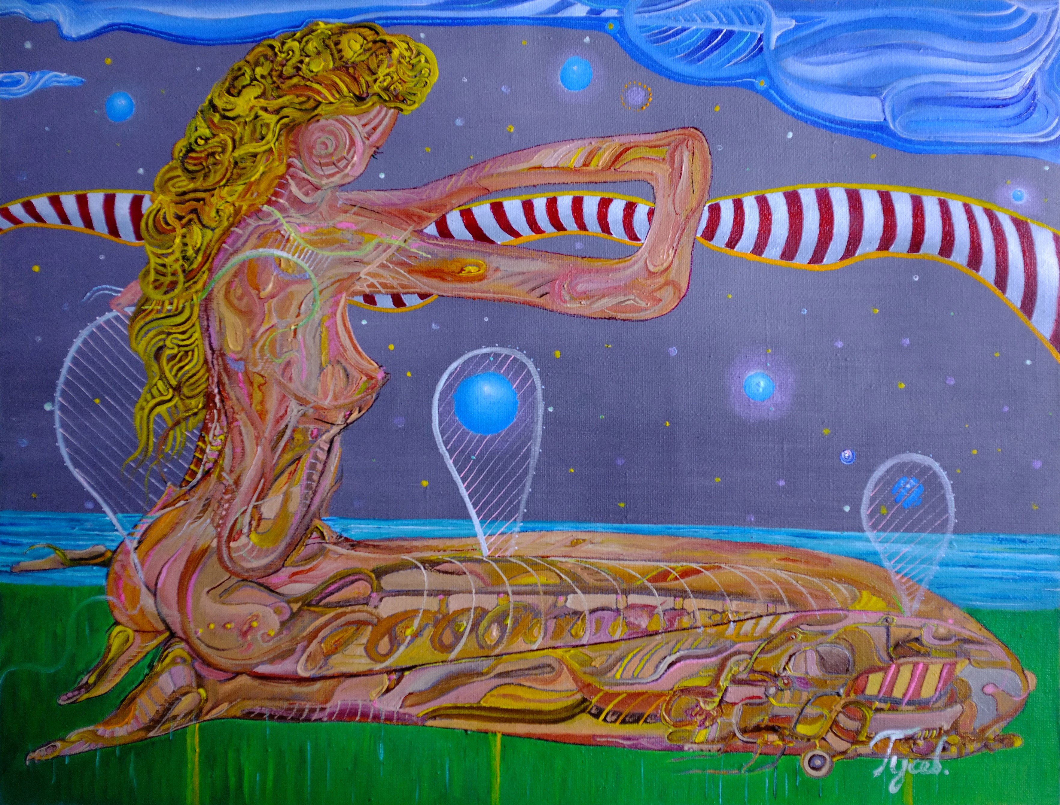 Кроме «анютиных глазок» всё остальное дачное цветочное великолепие уже сошло, а они держатся, малышки. Растопил печь (поднёс горящую спичку и сразу же занялось яркое пламя). Стремительно переоделся, вдумчиво вытащил продукты. Потоптался перед библиотекой, очень захотелось погрузиться-перечитать «Освобождение Толстого» И. Бунина из девятитомного собрания сочинений. Рядом стояли «Записки революционера» П. Кропоткина, «Воспоминания декабристов», некоторых других аристократов из тех, что, когда заняты своим прямым природным делом, то есть служат Отечеству – Престолу, воюют или положим, заняты географическими открытиями, прикладными науками, да хоть поэзией-литературой, то – шик, блеск, красота! Но если же начинают «умствовать», то есть уходят от света Православия, то, как говорится, хоть святых выноси. Вон «Петербург» Андрея Белого. Эх, завалиться бы на диван, погрузиться бы в прекрасную книгу, может враз бы всё и постиг! Ладно, ещё к этому может быть и вернёмся, а сейчас нужно посадить… «Лилии» холст/масло 30 х 40 см серия «Линия любви» фрагмент 1я