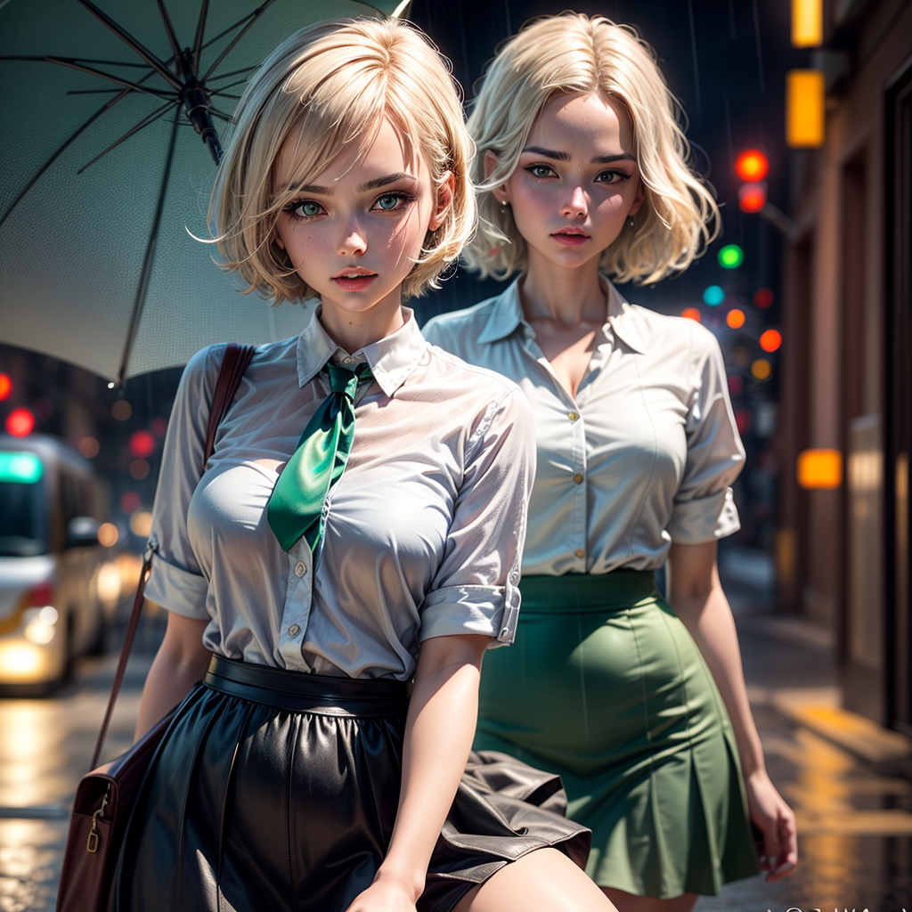 у арта довольно грустная история - первый не выигранный мной турнир нейроартов. Задача, насколько помню - город в дожде, ночью. Соглашусь, дождь в этой крутке не удался, он у всех был главной сложностью. Да и девушки получились не такие мокрые, как планировалось, но в мою защиту - крутанул только 4 раза, на больше времени не было. Зато два других турнира выиграл! Опять же, в мою защиту - участвовал только в тех, где знал, как подобрать удачные крутки. Турниры проводятся в Дискорде Unstable Diffusion, Seeart ежедневно - кому интересно, заглядывайте. Сейчас там идёт турнир на русалок, но решил создать пост, может покручу позже, если будет время.
