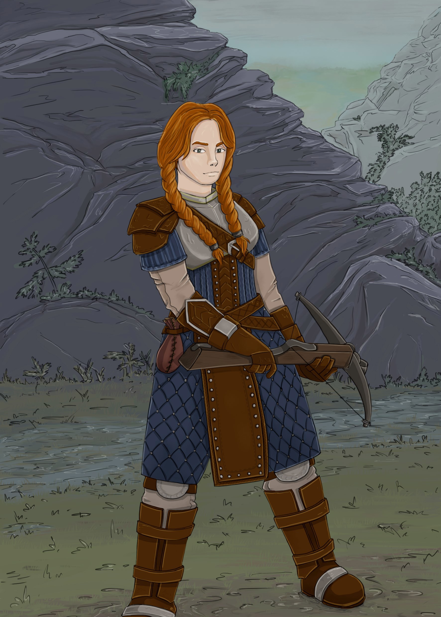 Познакомиться с Анкрет можно в книге "Сокровища Мургремата". Однако, данный рисунок относится к ее предыстории (пока еще не написанной). Здесь, в отличие от основной книги, она изображена молодой, в начале своих приключений.