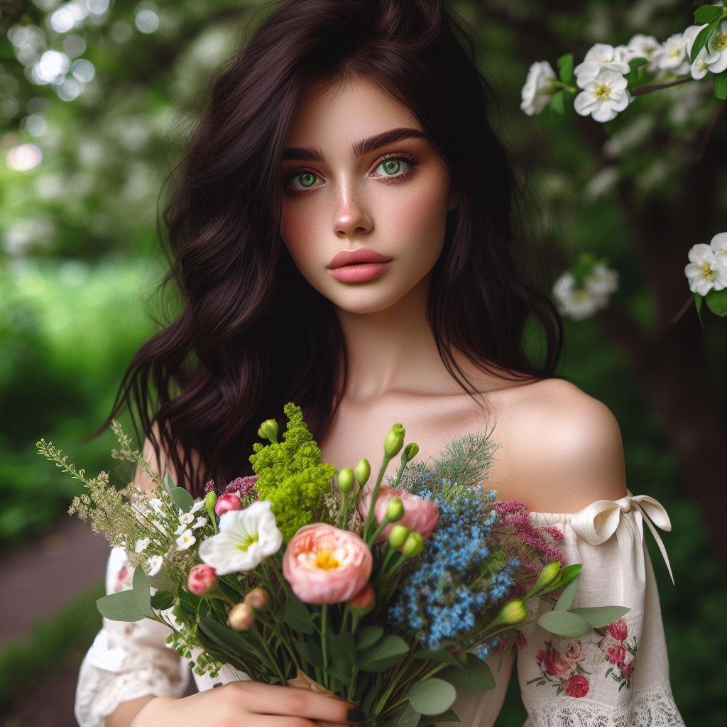 Девушки с цветами Автор: Mariyka_Ya Хочу поделиться красивыми артами девушек с цветами. девушки с цветами, иллюстрации, красивые девушки, нейросеть бинг 372 Пожаловаться