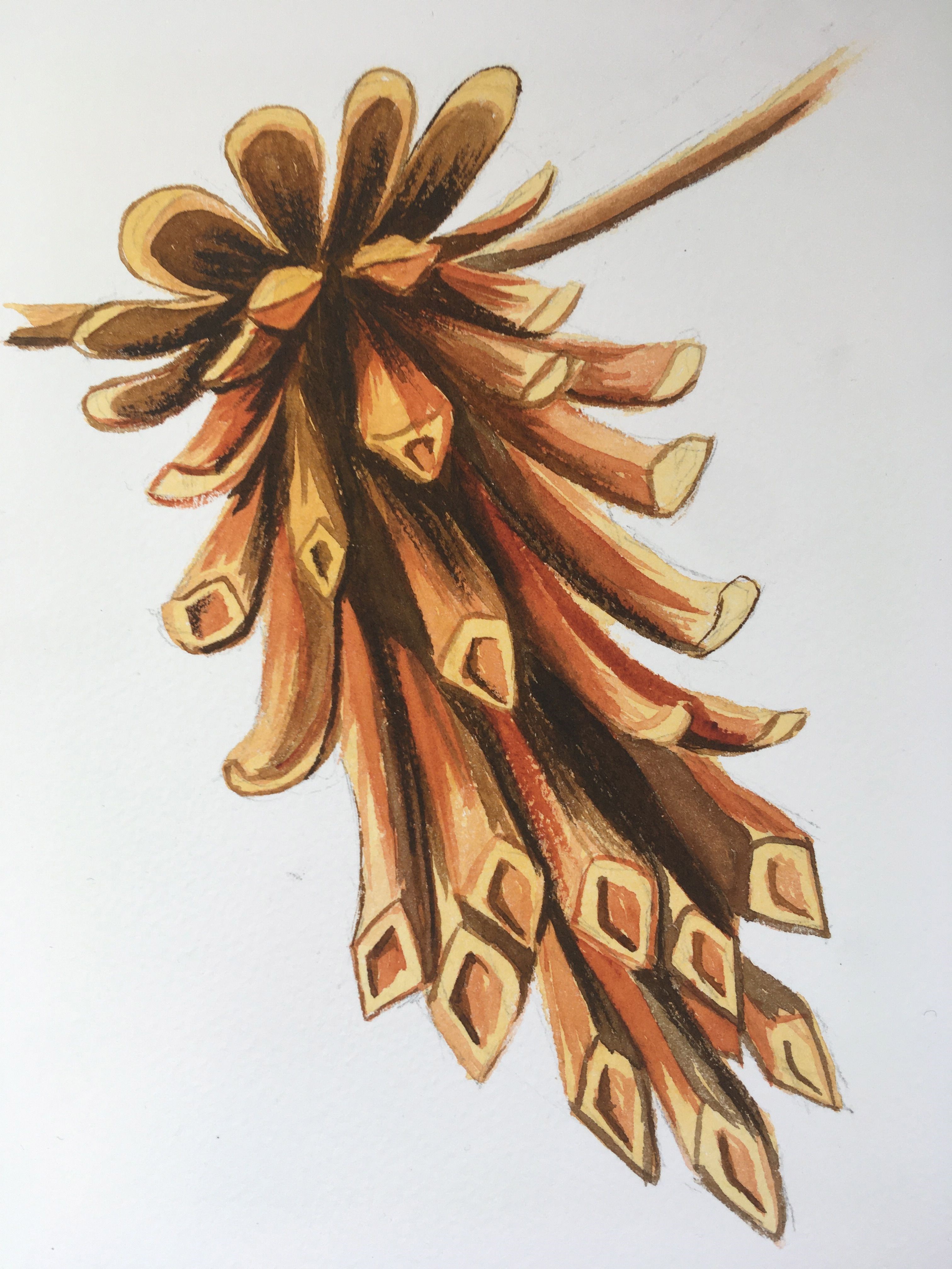 Шишка Автор: Наталья Болдырева Это какая-то не наша шишка - она действительно выглядит так необычно, но реф я к сожалению потеряла иллюстрация, лес, сосна, шишка, акварель 466 Пожаловаться
