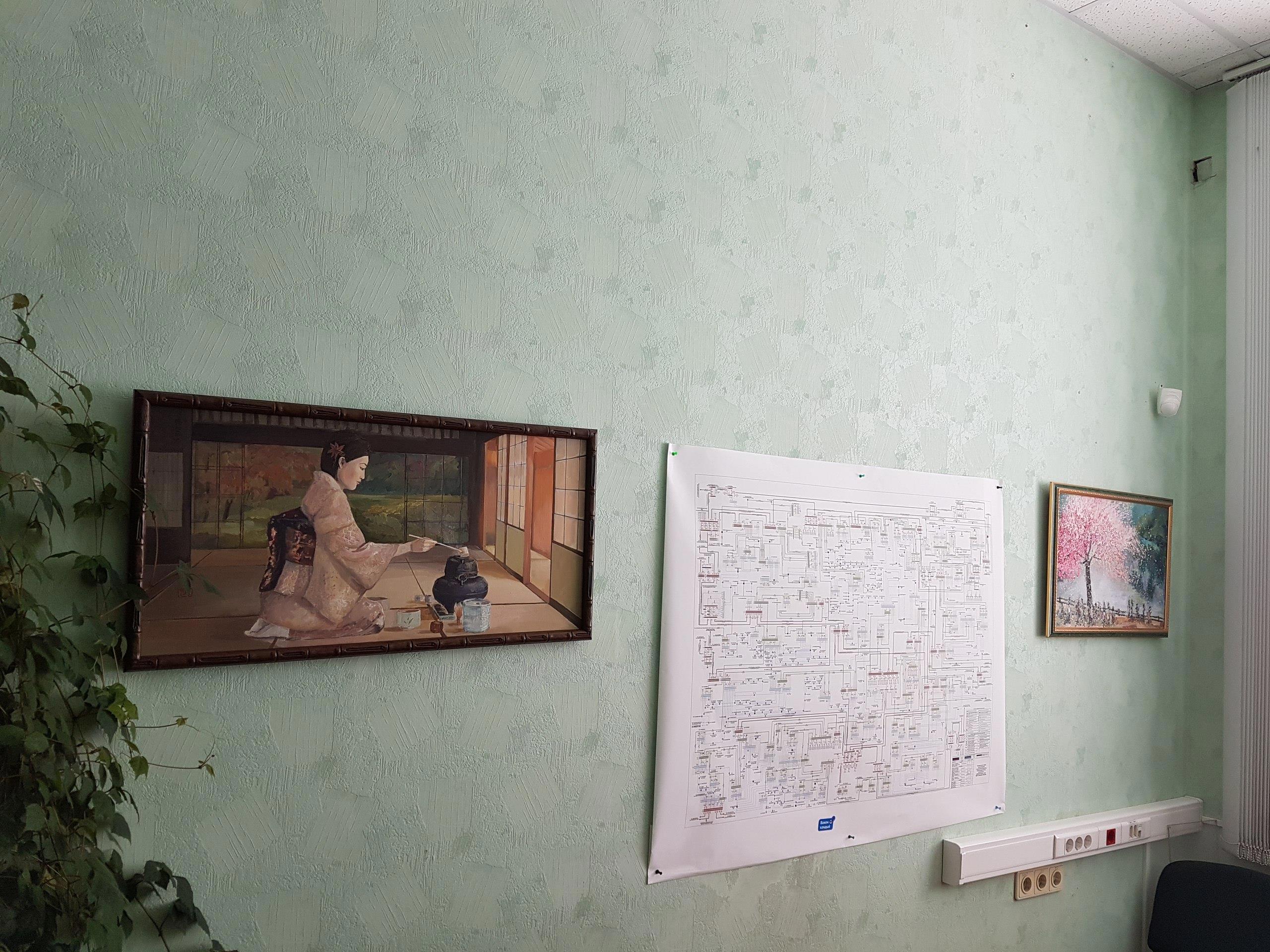 Картины разбавляют рабочие процессы и у каждого сотрудника есть своя любимая работа, на которую тот медитирует, чтобы разгрузится.