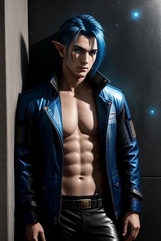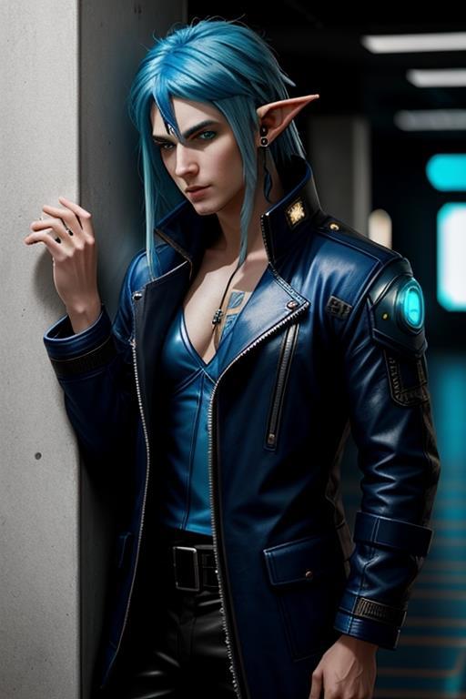 И ещё пара вариантов этого синеволосого эльфа от нейросети: