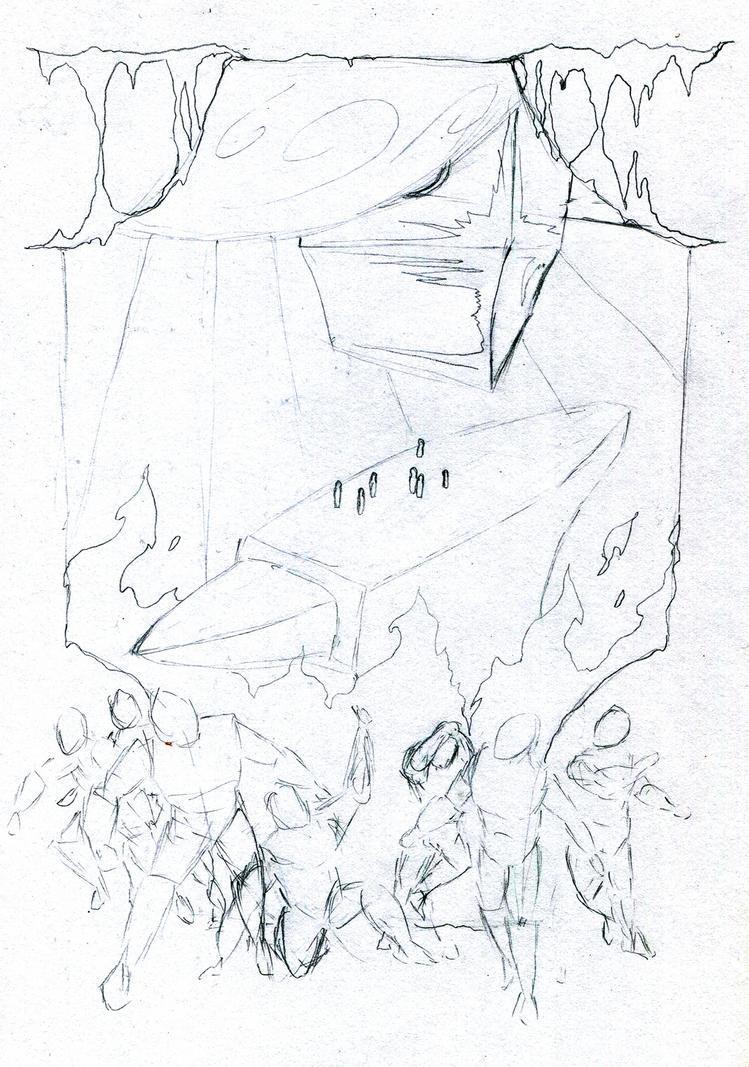 "И Ауле, заплакав, схватил огромный молот, чтобы разбить гномов. Но Илуватар увидел смирение Ауле и сжалился над ним; а гномы испугались и увернулись от молота, и, склонив головы, взмолились о милосердии. Тогда молвил Илуватар: