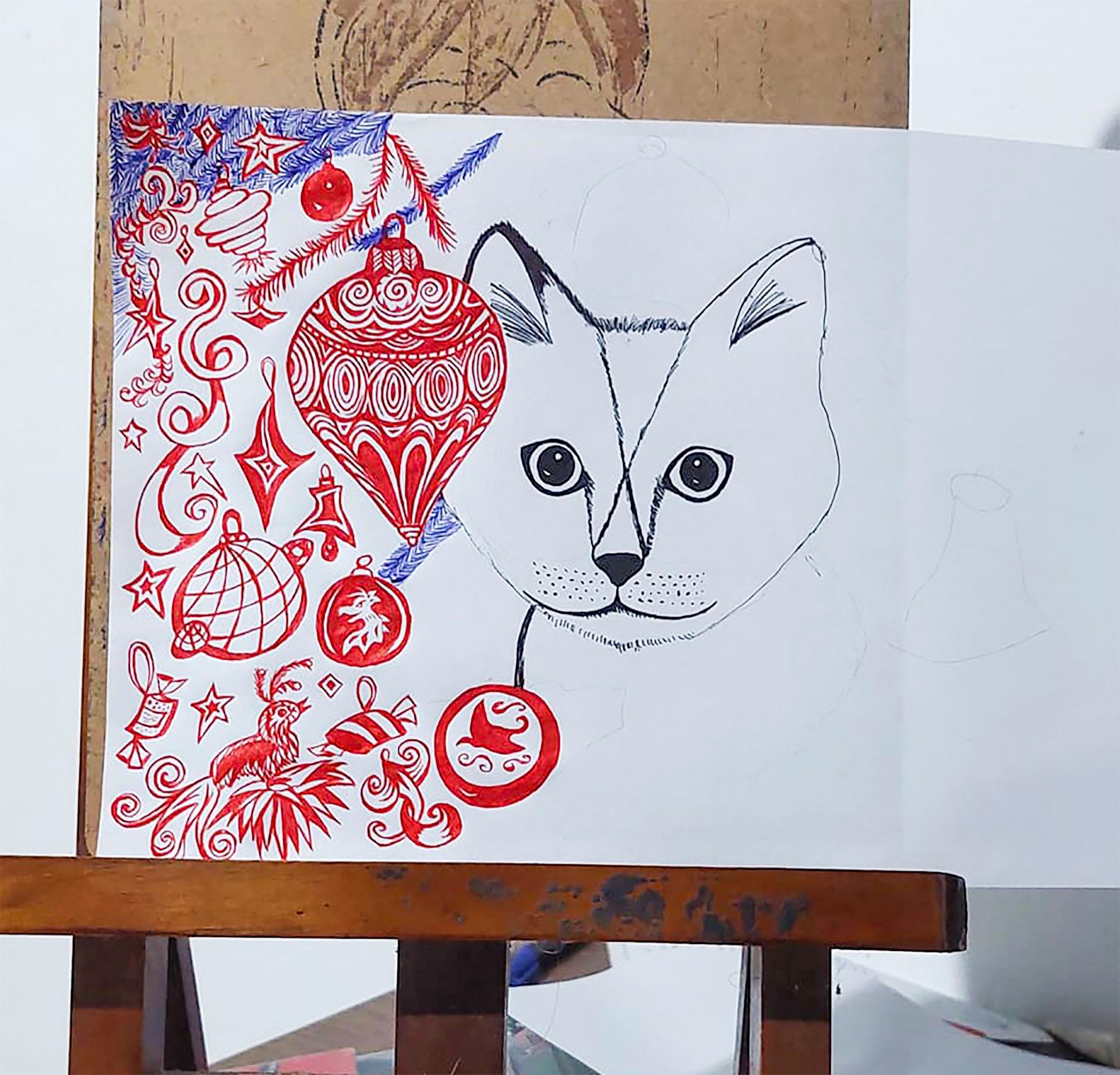 Кот и елка - это классика, мимо которой пройти невозможно. Вот я и не прошла.