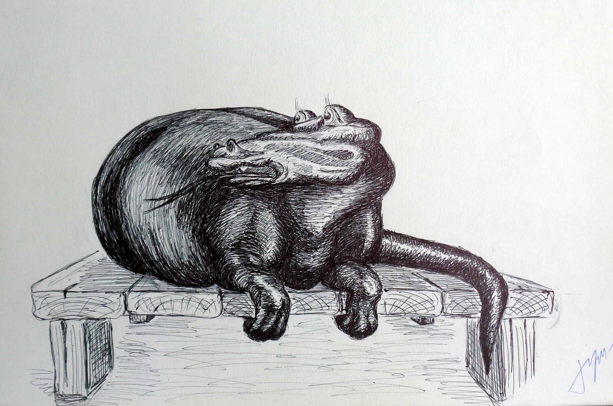 Рисунок 30-летней давности, сделано чёрной шариковой ручкой. А вот что там была за история с драконами - не помню. Вроде, они жили среди людей.