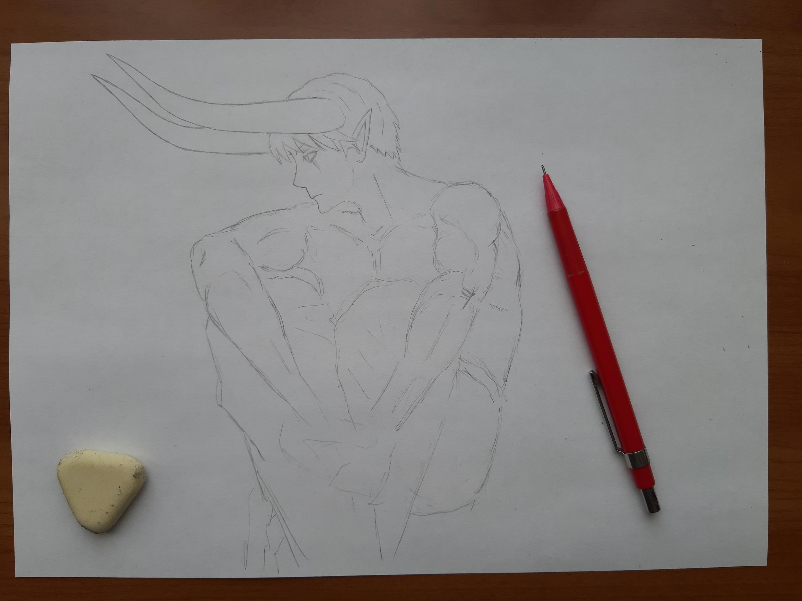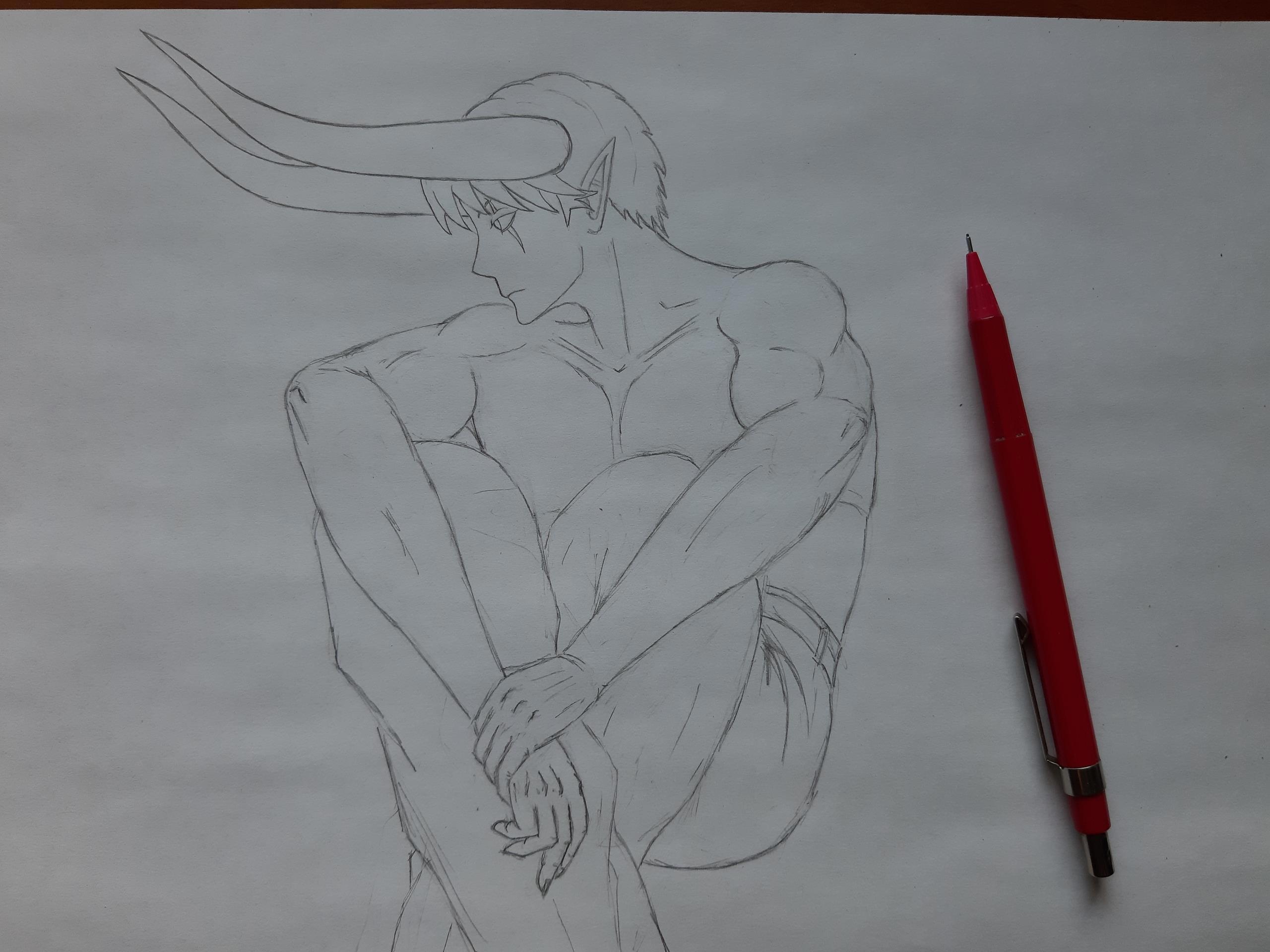 Печальный демон Автор: Demon Sanya Ремейк на картину Врубеля "Демон сидящий".Персонаж: Александр.Карандаш.Январь 2024.Цветная версия... Этапы отрисовки... персонажи, фэнтези, demon sanya universe, иллюстрация, грусть, демон 357 Пожаловаться