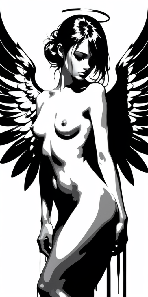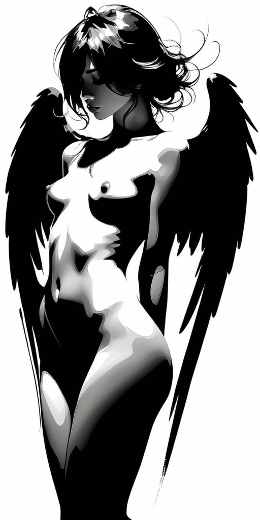 Снова крылатые девы, и снова эксперименты с SDXL-моделями и со стилями. Стиль назвал "b&w profile", потому-что даёт картинку в чёрно-белых тонах, и при этом старается отобразить персонажа в профиль