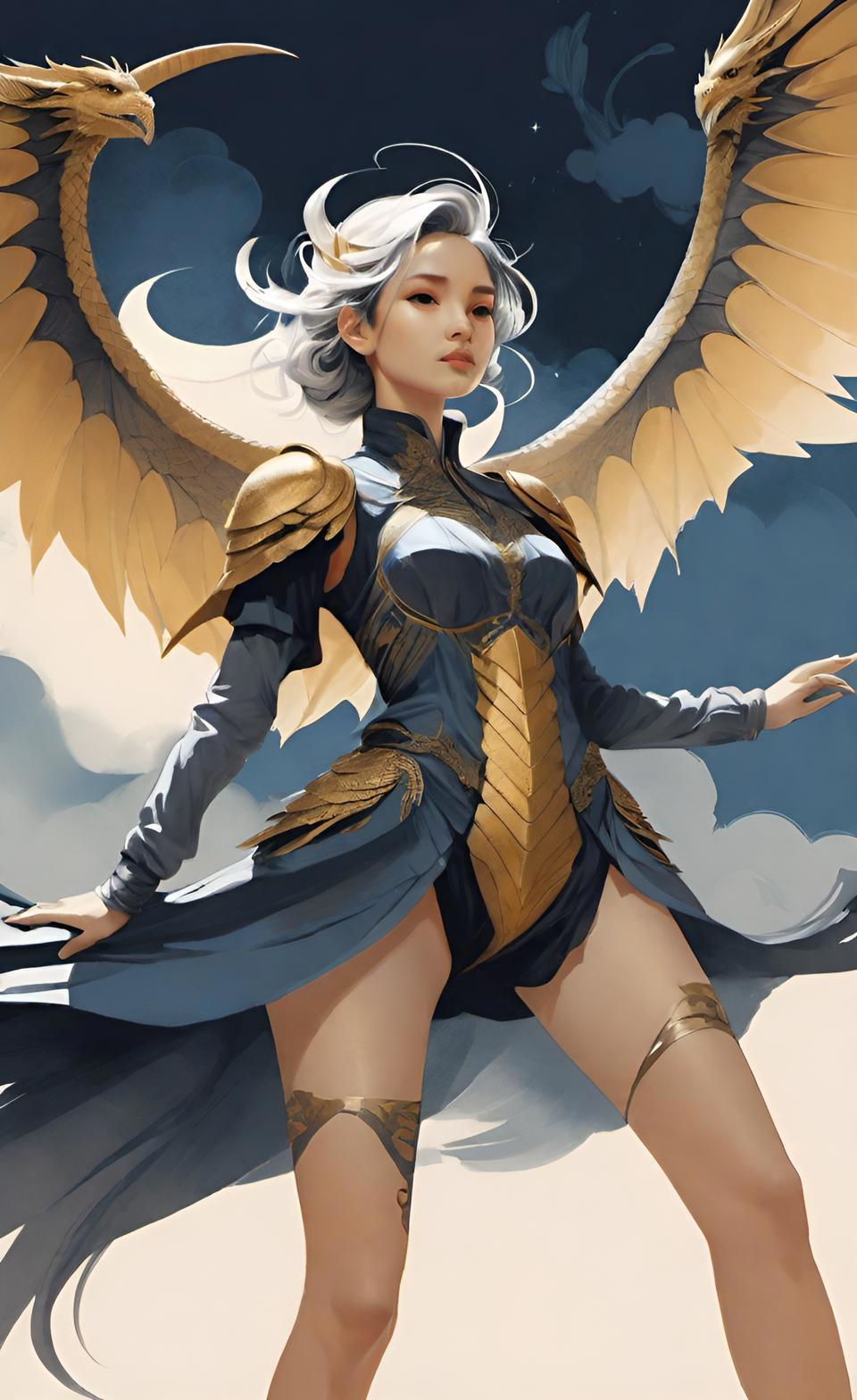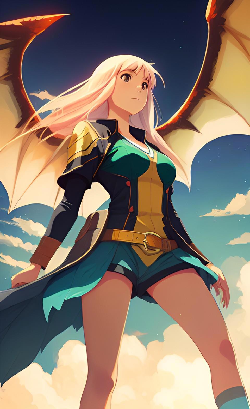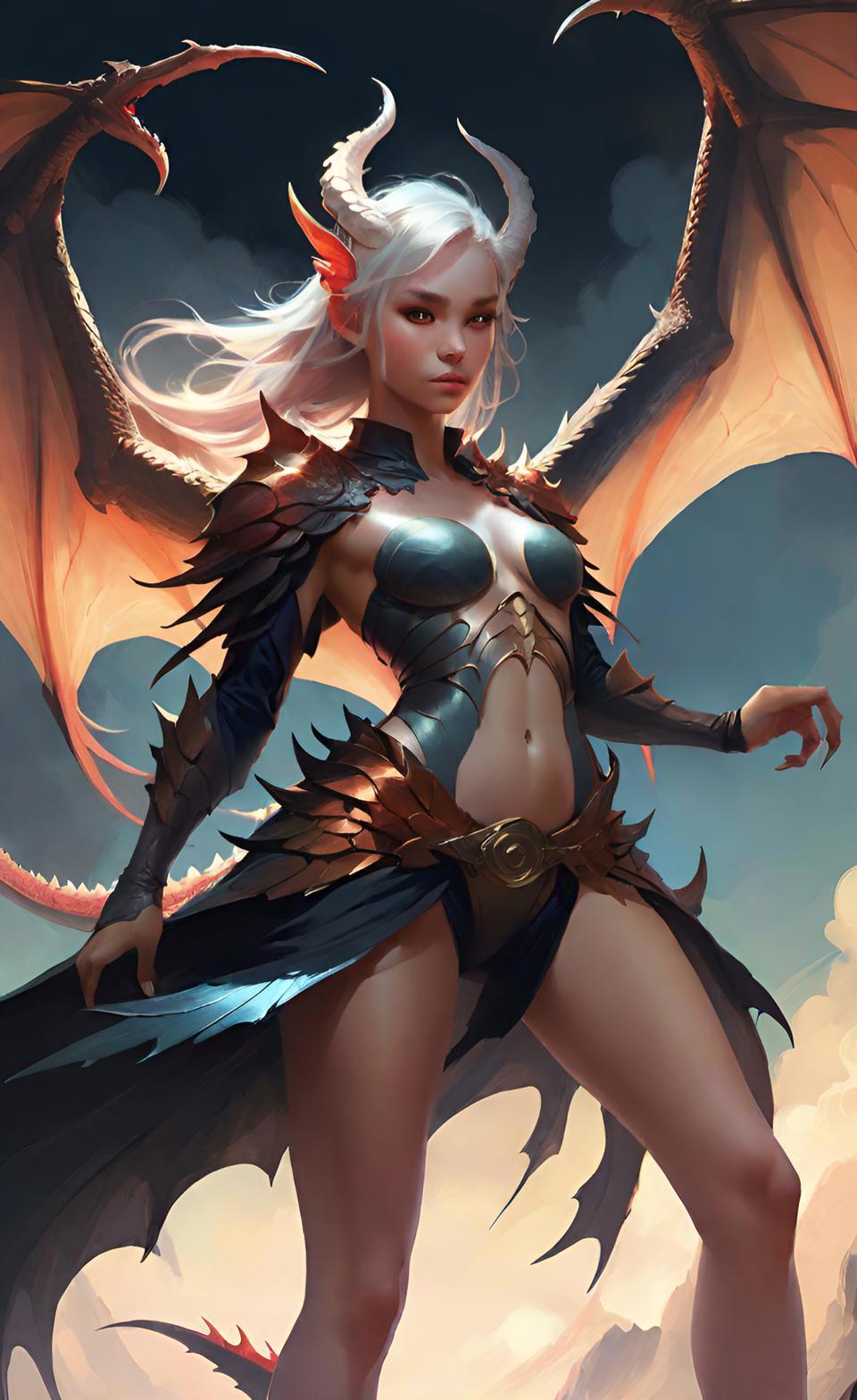 Девушка-дракон, создано бесплатной версией нейросетки.