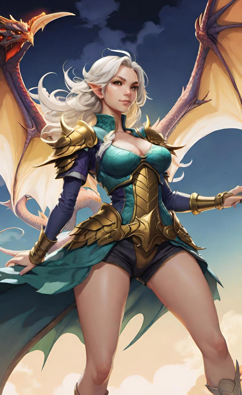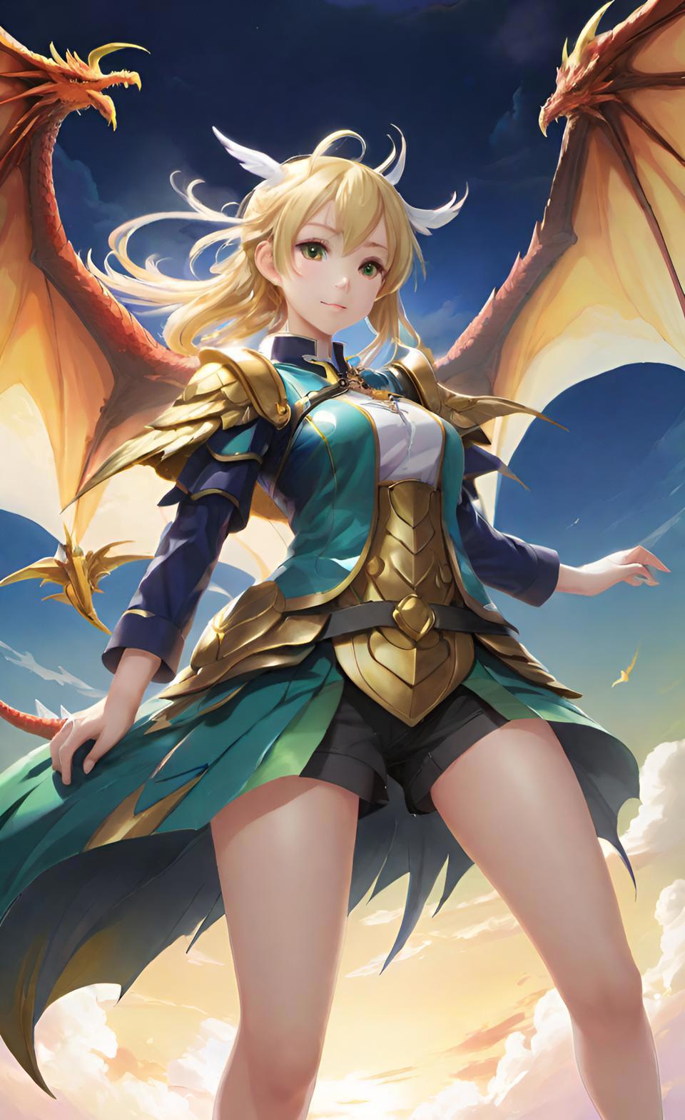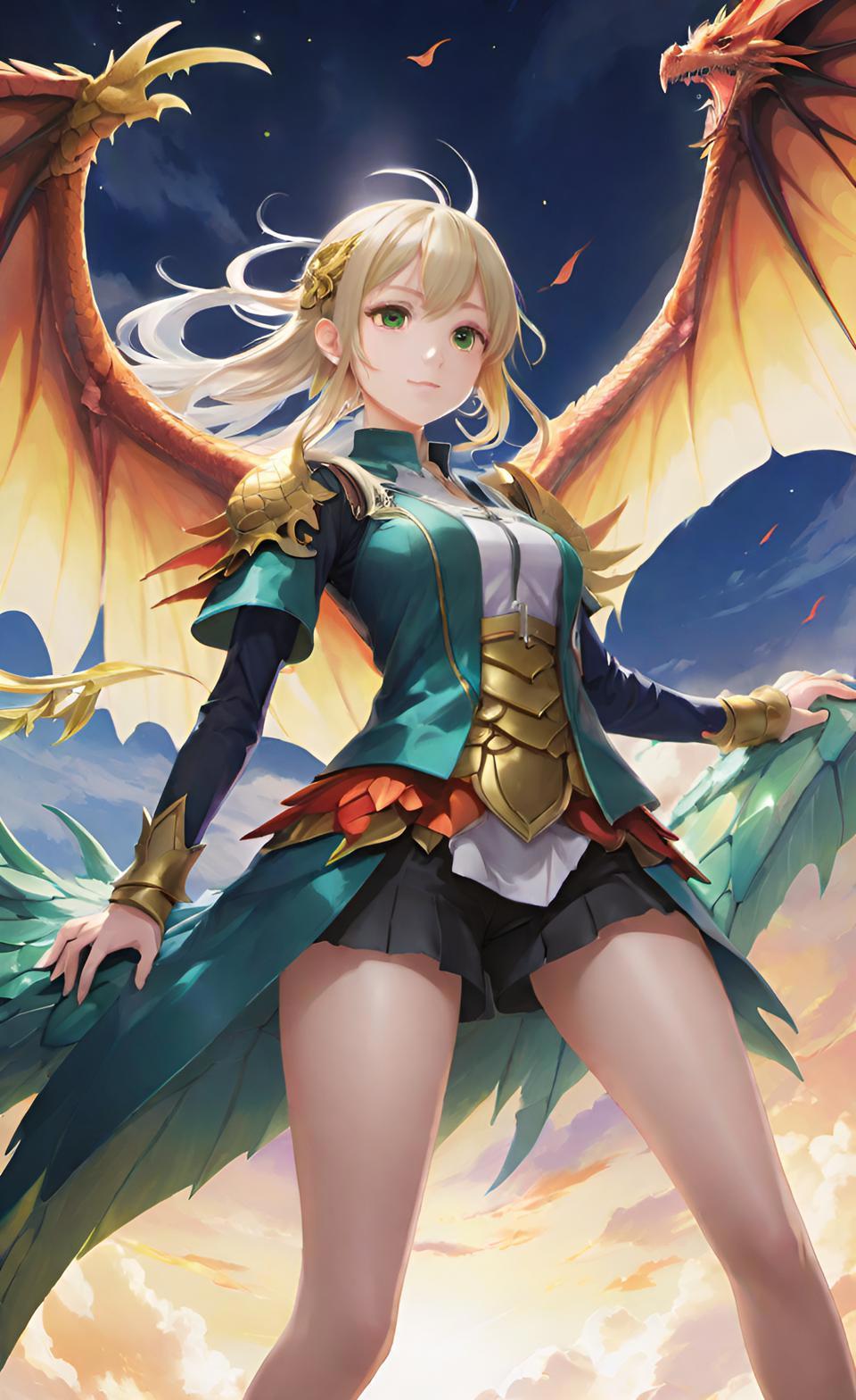 Девушка-дракон, создано бесплатной версией нейросетки.