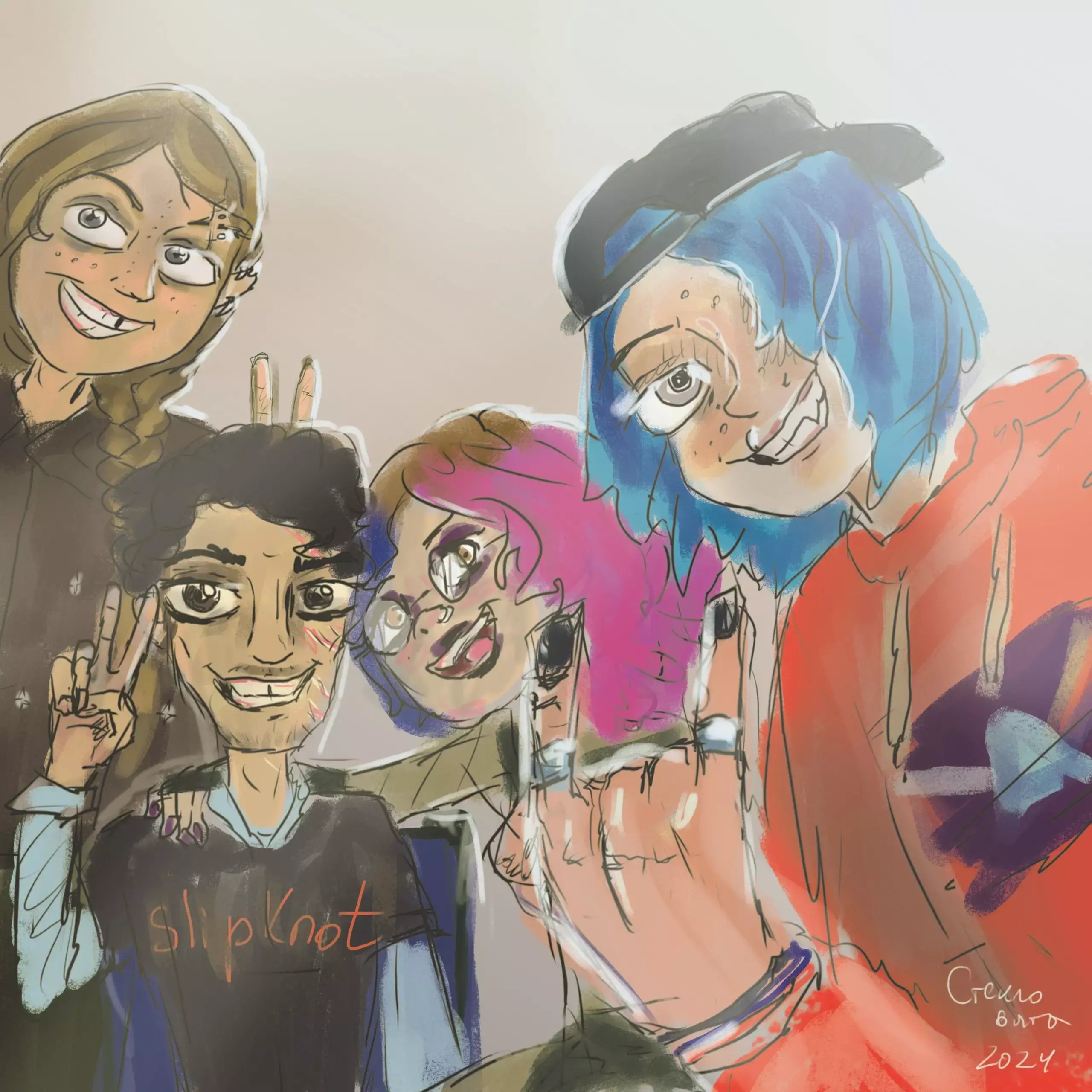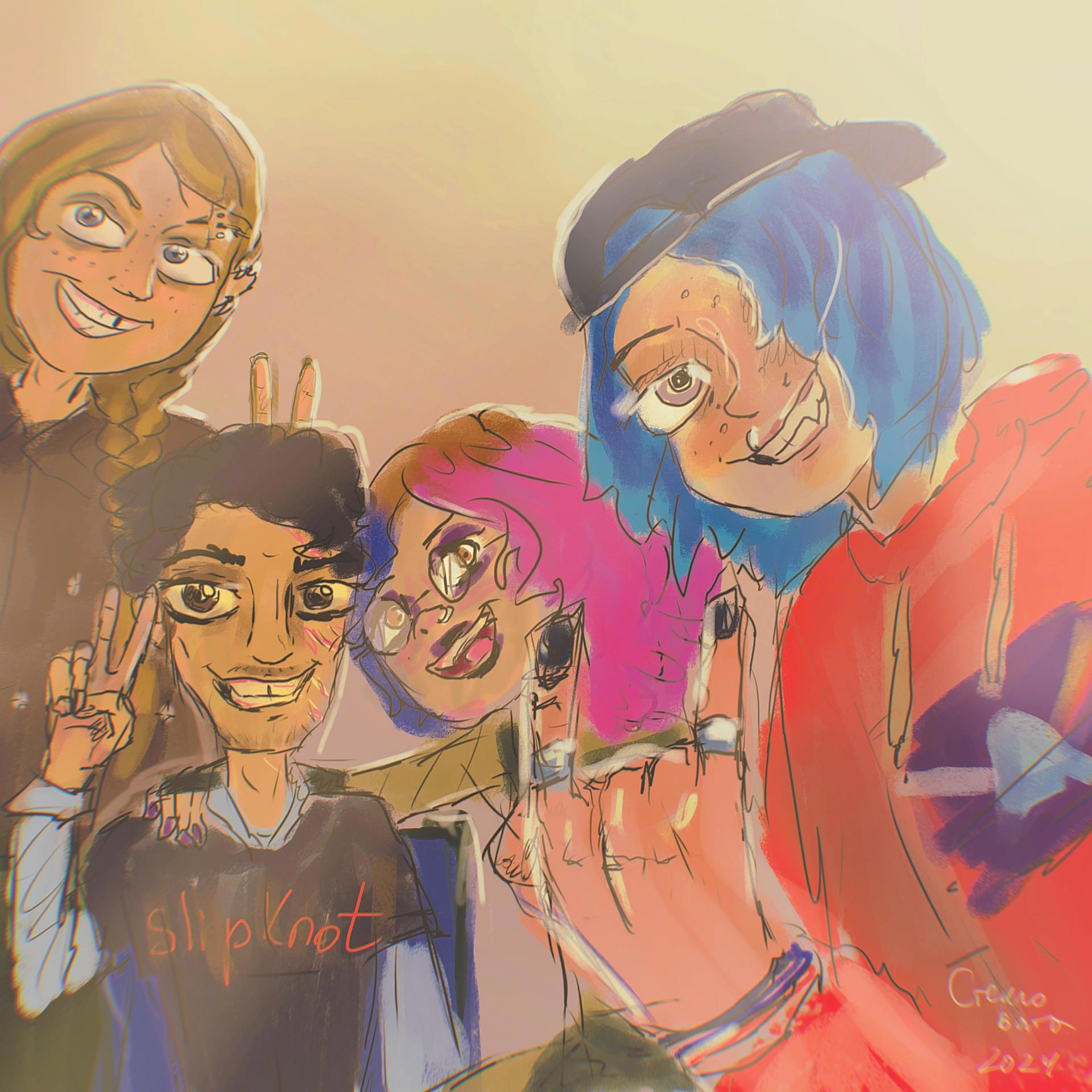 Это уже нормальные люди из Адской мультивселенной: колясочник Данёк, панковка Нина, её бывший согруппник Игорь и старая подруга Дани байкерша Яна)