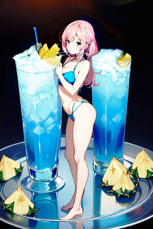 Я попросила у сеточки коктейль "Голубая лагуна". В одной из глав "Кофе? Меня?" Кирилл готовил такой для Веры. Сетка через раз не желала делать то, что мне нужно. Коктейль почему-то то розовый, то оранжевый подавала. Я уже собралась писать ей рецепт, как вдруг неожиданно она выдала мне картинку с бокалами и девочкой. Девочкой с розовыми хвостиками!!!