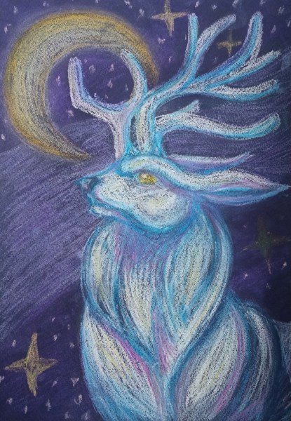 Внезапно переключило с диджитал на традиш. Решила впервые в жизни попробовать сухую пастель. Вроде бы в колледже рисовать углем доводилось, но то, как мажется и рассыпается сухая пастель, несколько застигло меня врасплох. Фон несколько размазанный вышел, да и есть подозрение, что не очень удачно я сам рисунок сфотографировала, но как уж есть. Продолжаем учиться! :)