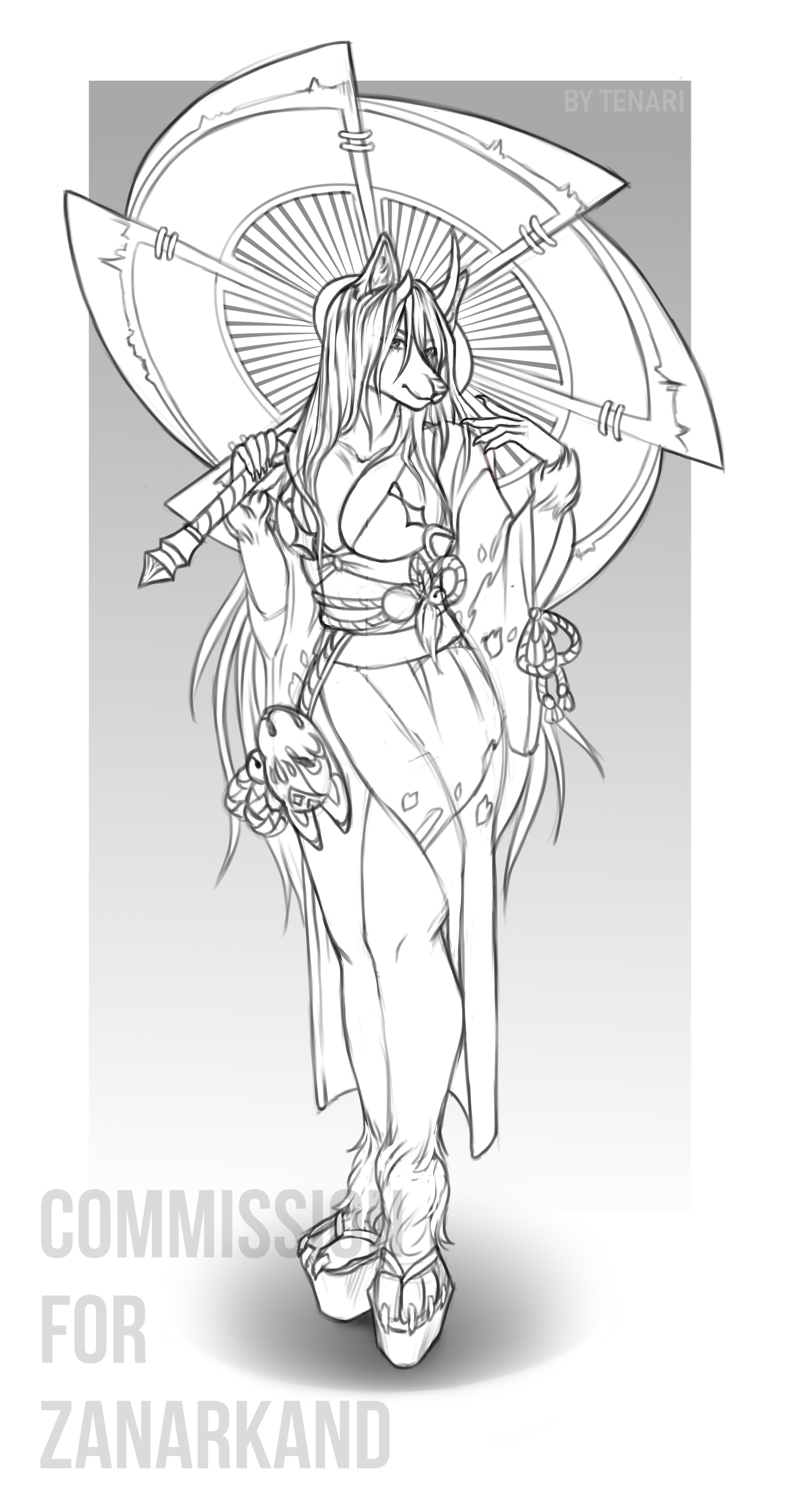 Восточный зонтик Автор: Tenari Не всегда зонтик предназначен для защиты только от дождя (¬‿¬ )Заказ Zanarkand, кастом иллюстрация, рисую на заказ, скетч, фурри, япония, волчица 187 Пожаловаться
