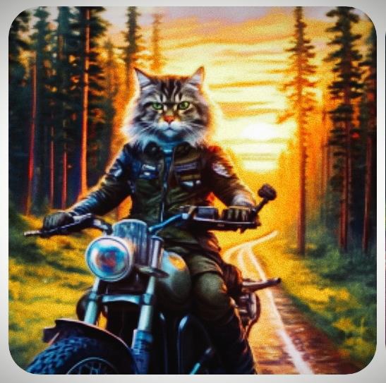 Кот - байкер) Автор: Дмитрий Маточкин Открыт мото сезон) компьютерная графика, кот, кот на мотоцикле, котэ, лесная дорога, нейросеть, поездка на мотоциклах 255 Пожаловаться