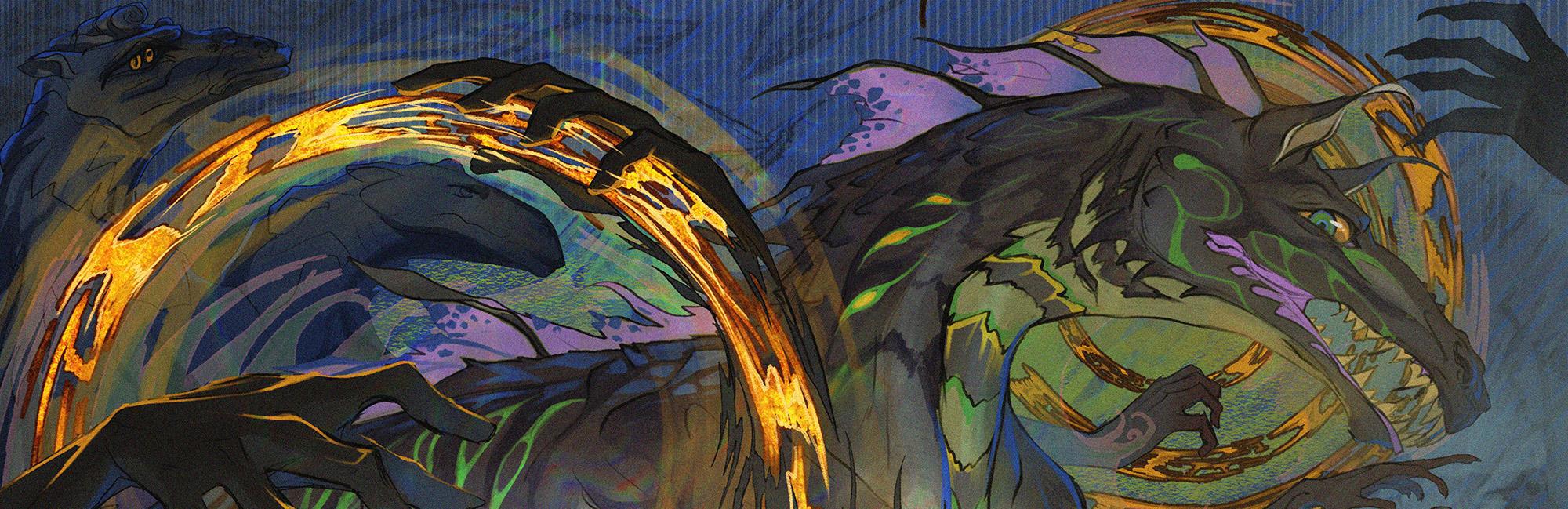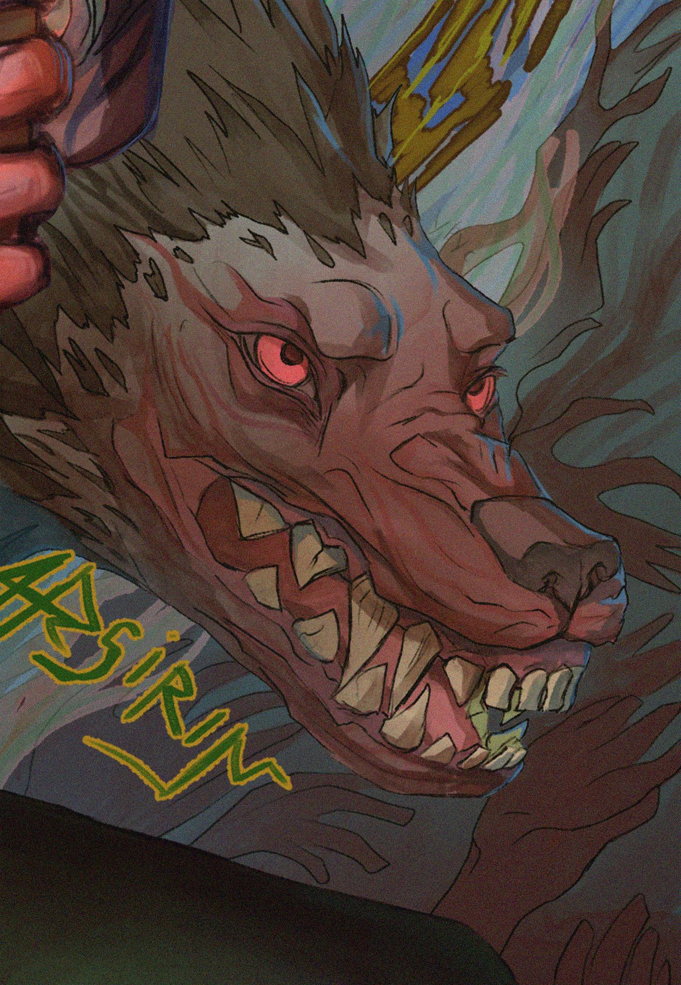 Можно сказать - крайне замороченный граффити-мудборд персонажа с элементами мира, с которыми так или иначе планирую его столкнуть.