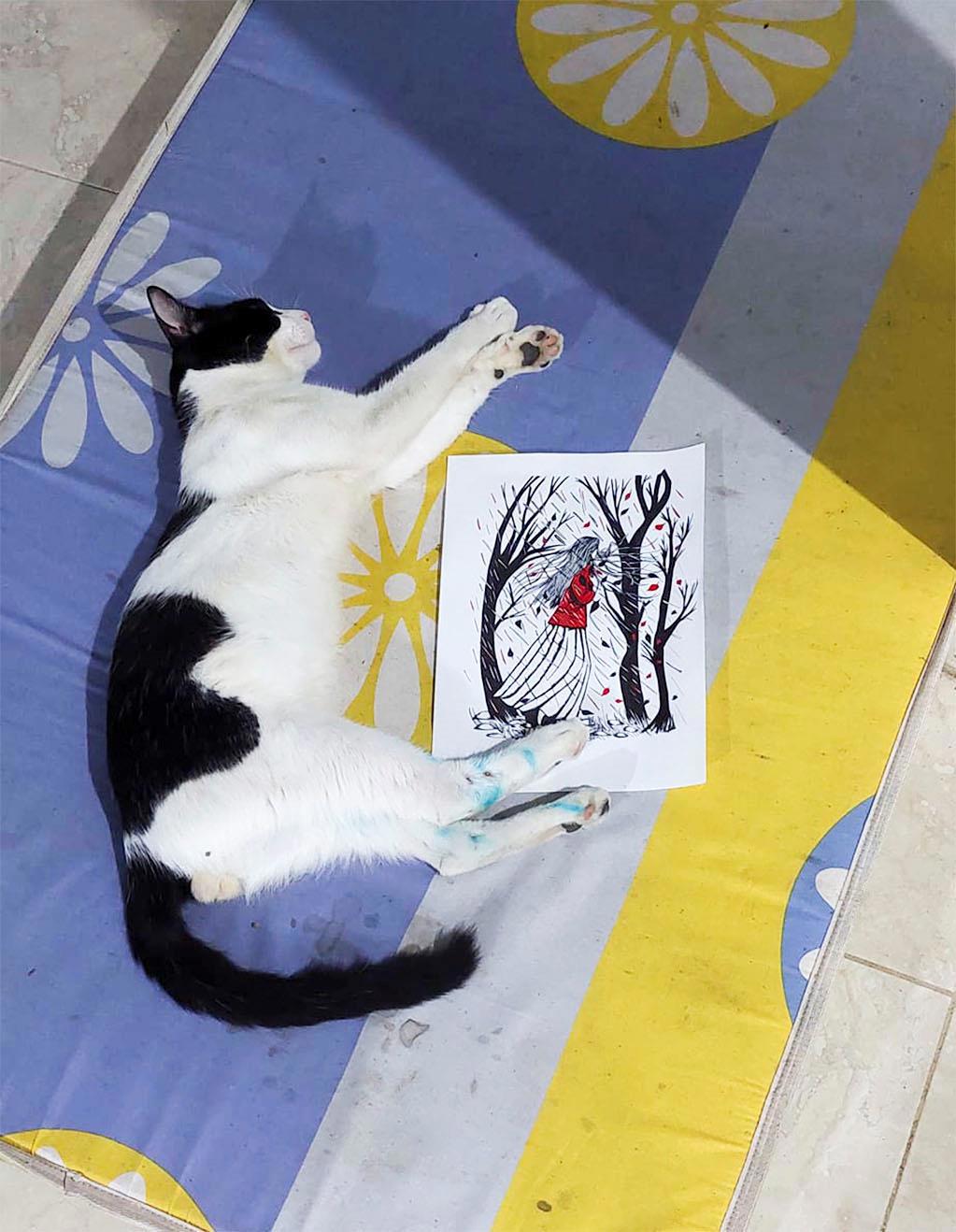 Котик опять лапу повредил, что не мешает ему каждую ночь уковыливать навстречу приключениям.