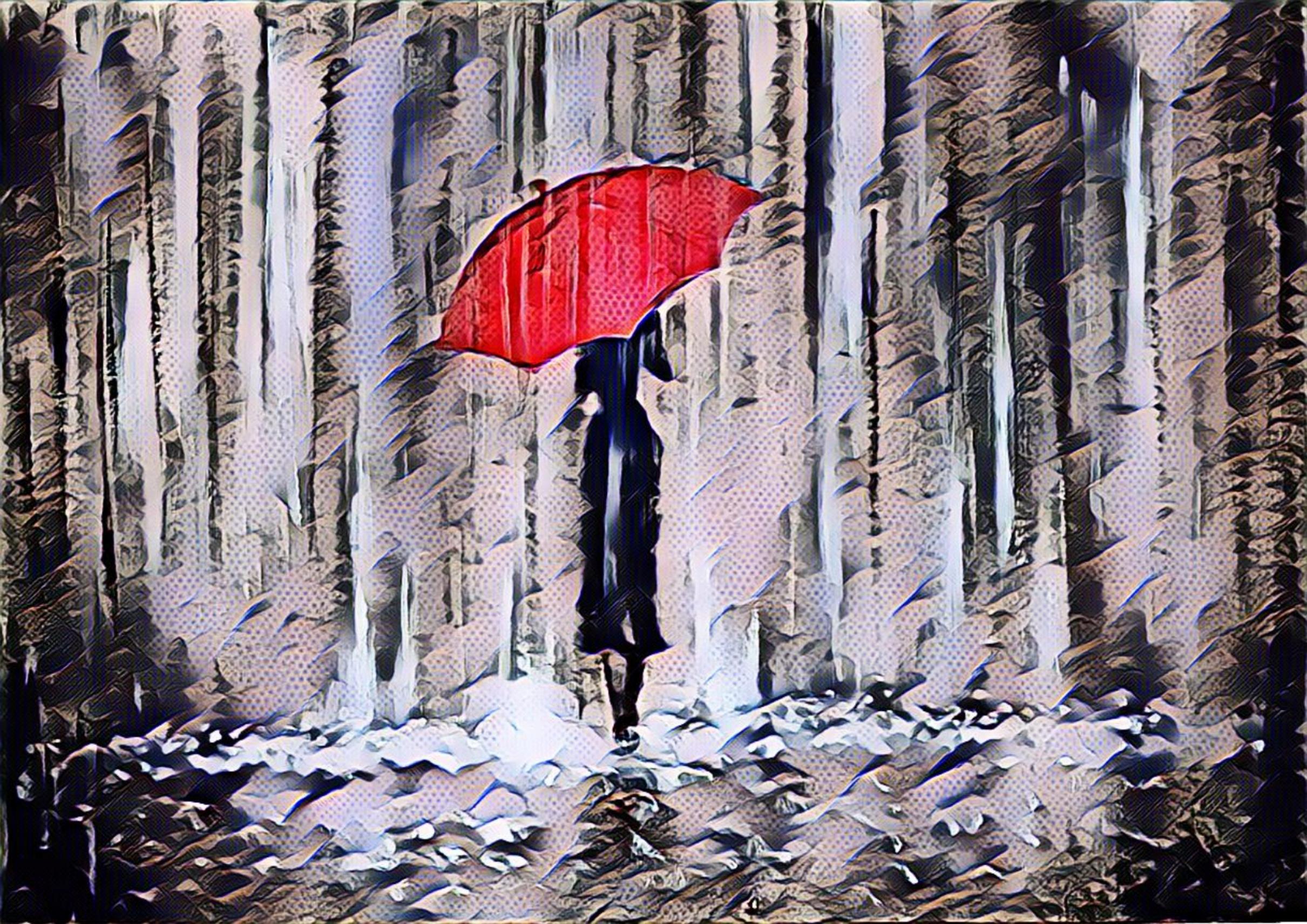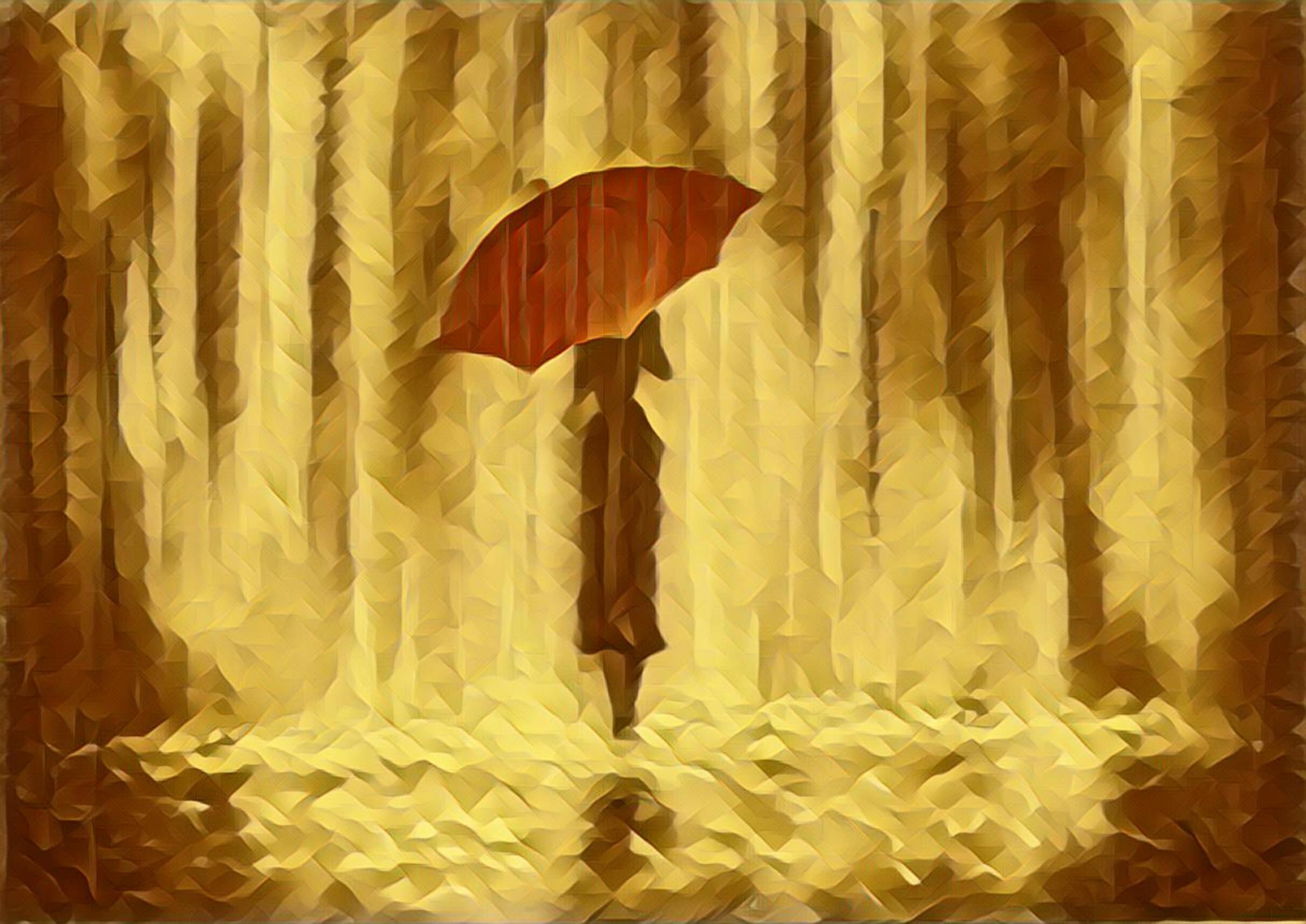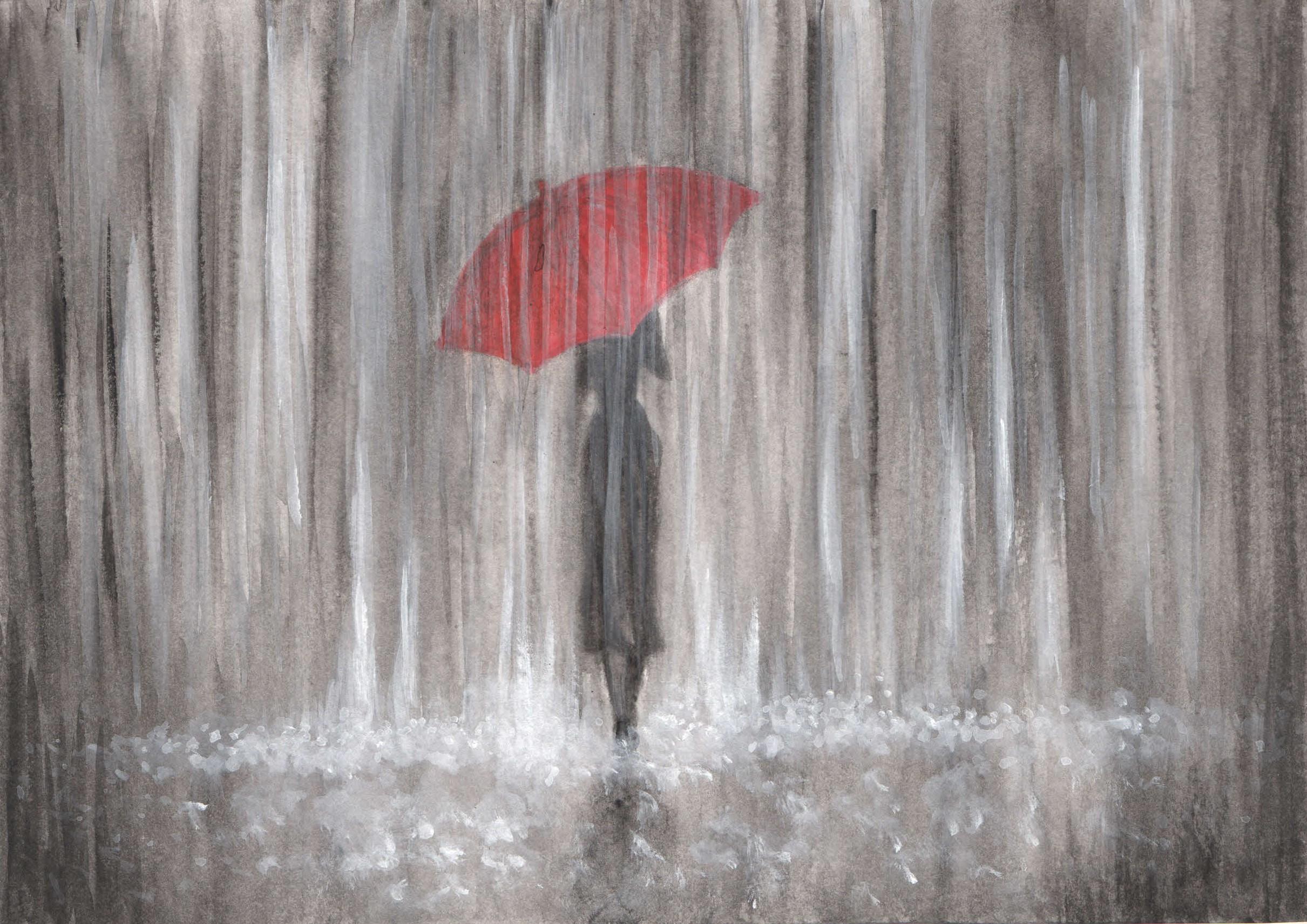 Только вчера я закончила миниатюру "Ливень" (оригинал: акварель, акрил):