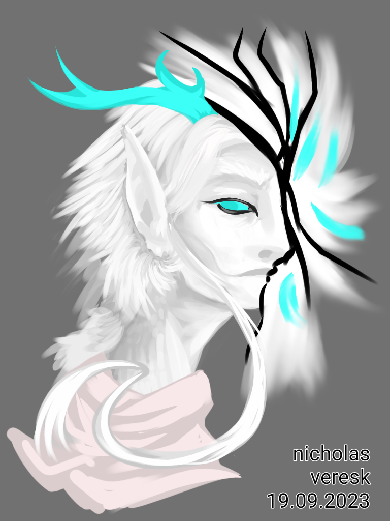 Рисунок, который возвращаю сюда. Хм, чего добавить? У меня также есть ещё два её портрета, более ранний и такой же компьютерный, и более поздний, созданный на телефоне. Но главным будет этот, в цвете, покуда я понял, что тона его нравятся мне.