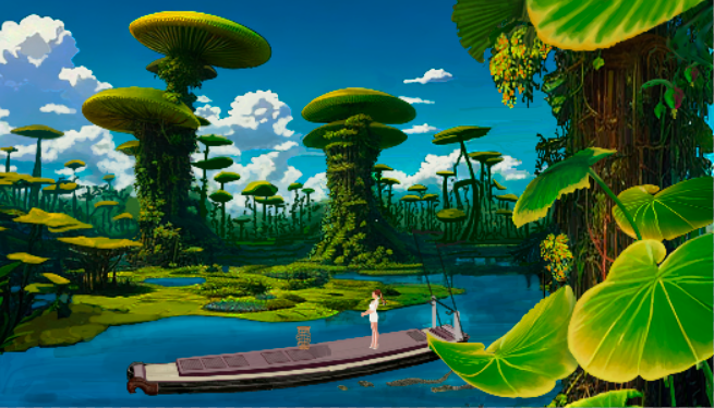 Главные события происходят на лодке, поэтому задний фон легко менять. А если изменить положение персонажей, то вообще получится три разных рисунка