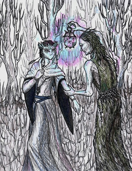 Самая страшная ночь в году, дорога через лес, встреча с феями. Девушка в маске, и нечисть её не опознает, но резко ловит за руку и пытается рассмотреть в свете волшебного фонаря.