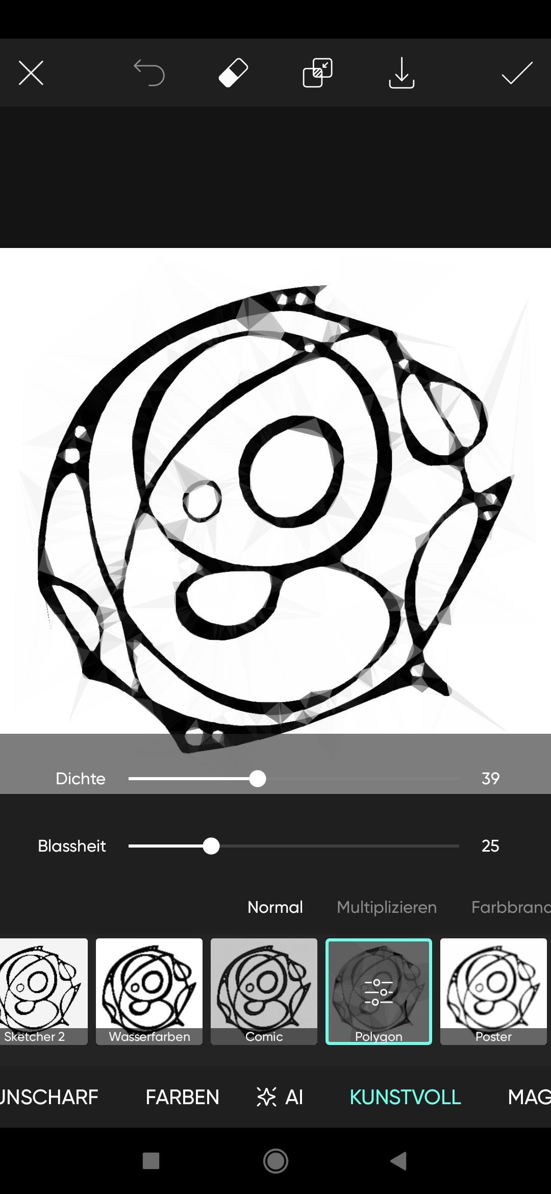 и сразу понятно, тут линии изначально очень ровные, так что для нашего "этнического" эффекта мы будем не выравнивать, а наоборот как то контрастно изменять. Видно, тут контуры выглядят иначе. Если мы хотим полного соответствия как будто вручную, надо еще добавить искажений.