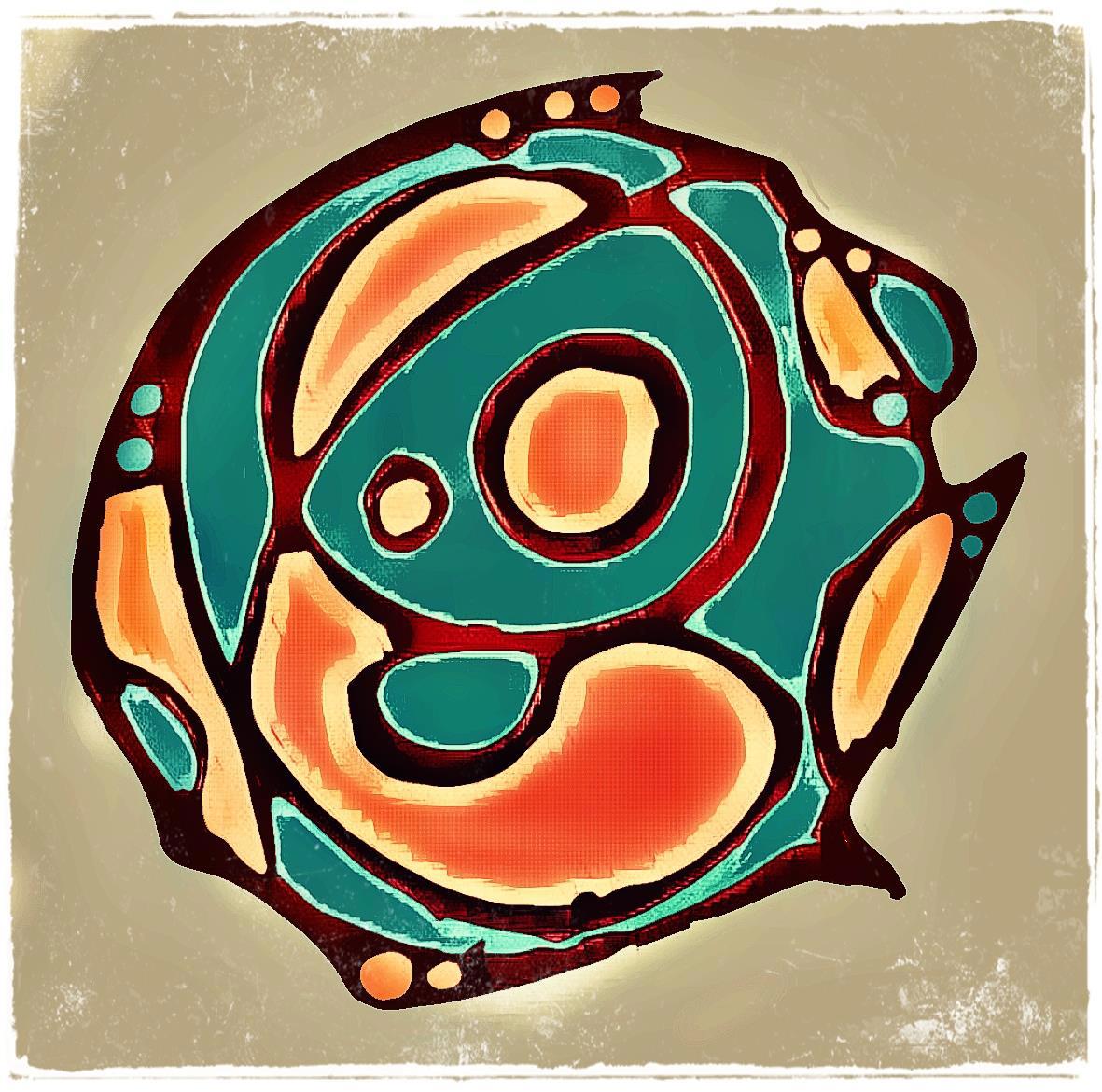 Ну вот тут вариант Арта, который начался с ровного тайна в ПК. Потом я вносил искажения, дорисовывал. Ну он теперь стал такой как бы вручную без линейки рисовали