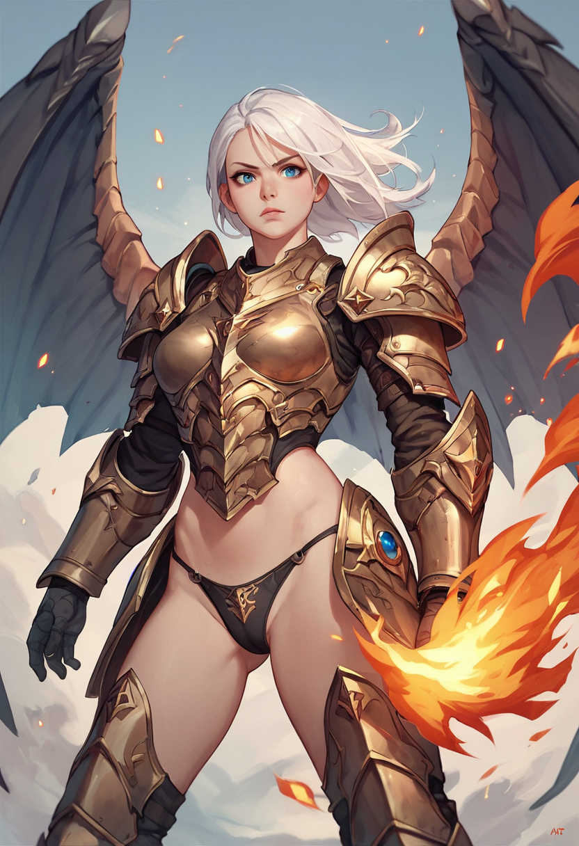 Небольшая фантазия о крылатых девах в броне… только не спрашивайте почему при бронированном верхе низ защищён одними труселями! Я «художник», я так вижу!