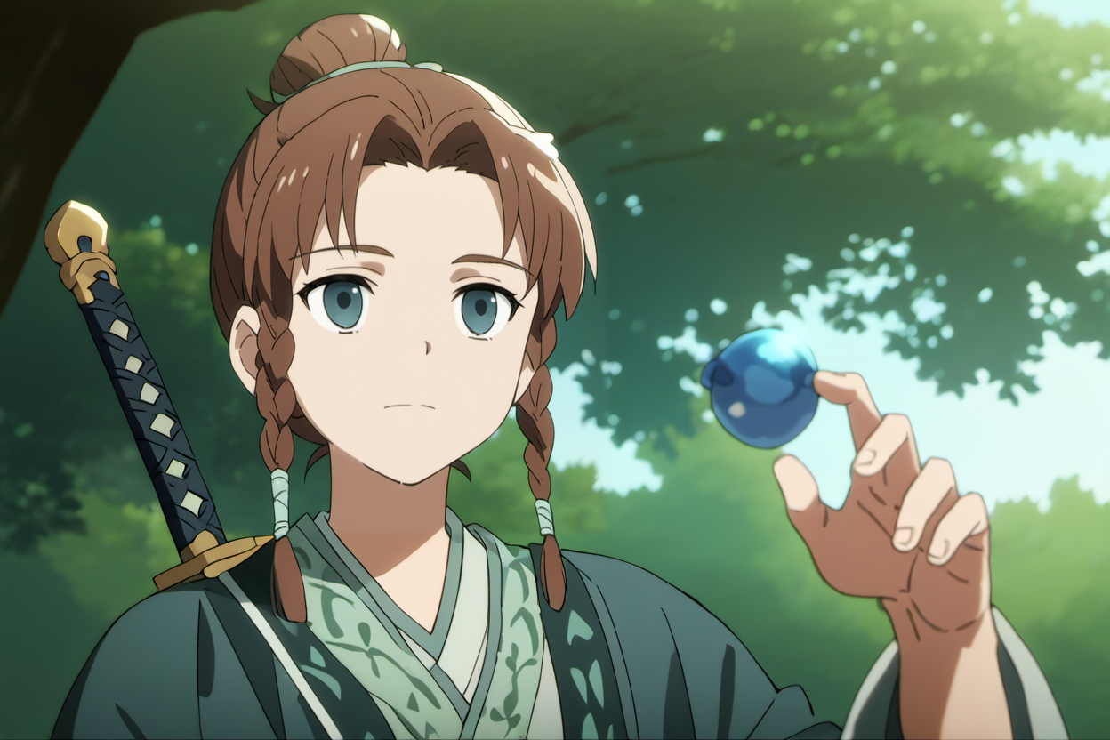 В руки попала очень интересная лора, благодаря которой арты получаются похожими на скриншоты из аниме. Ну и учитывая мою страсть к иллюстрированию отдельных фрагментов текста, а также то, что у меня уже есть основы для троицы из Баобэй, я решила немного побаловаться с этим - и результат просто волшебный (´,,•ω•,,)