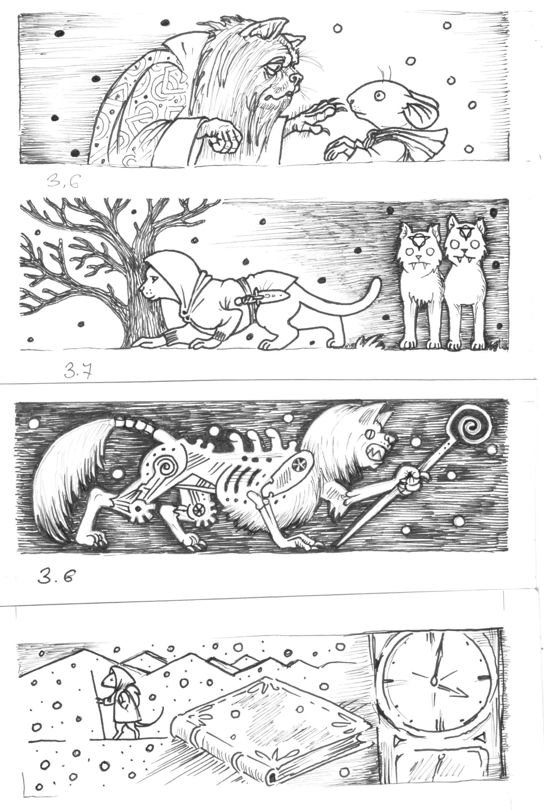 | заставки для глав 3,6; 3.7; 3.8 и эпилога  | перерисовка для гл 3.1 тк оне, оказывается, шагающие  перерисовка для главы 3.5  | |