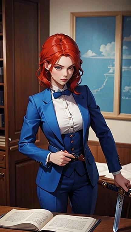 Любимое оружие Ксении складной меч и, нож в сапоге и хлыст.