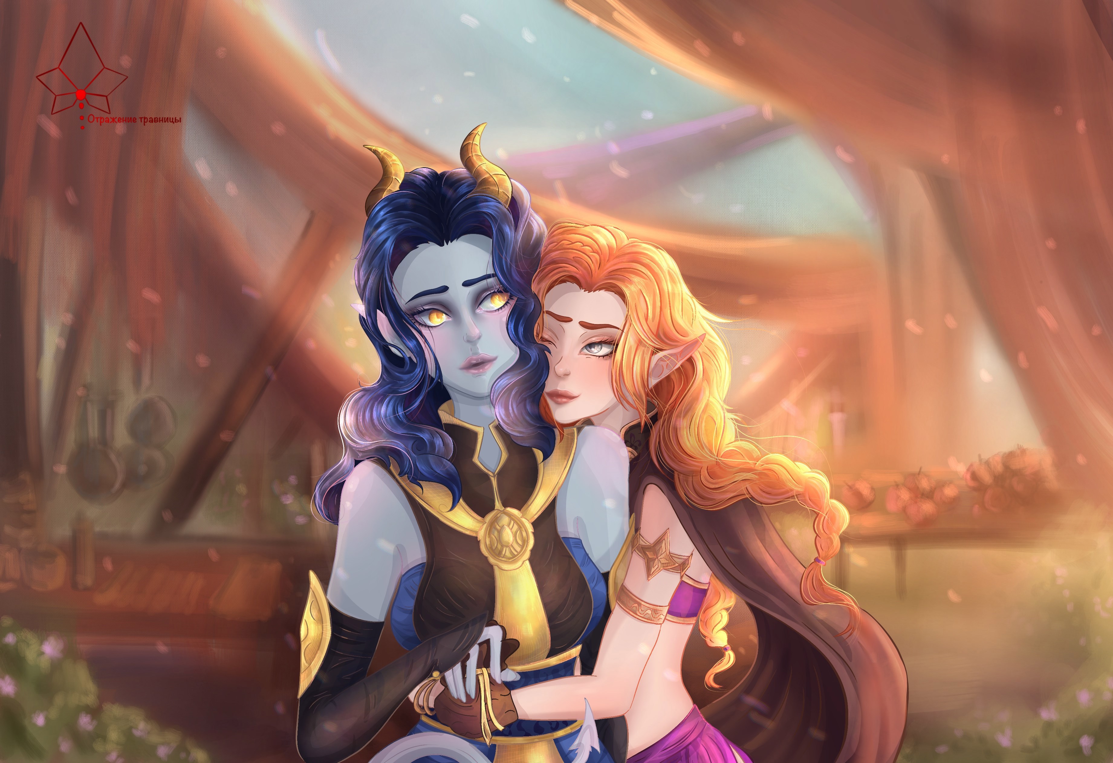 А на иллюстрации момент, где рыжуля Зара выпрашивает у Каллисты дорогой лук. Боевой лук, а не тот, что наряд.