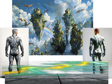 На плавающих в воздухе растениях тоже что-то копошилось, отгоняя птиц, тем не менее постоянно пытавшихся залезть туда. А потом стайка зеленовато-голубых рыбок вынырнула из воздушной реки, расправив плавники и, активно ими замахала, корректируя курс полёта. Они протаранили край зелёной поросли и спланировали обратно в зеленоватый поток, в некоторых частях которого по всему периметру росли зелёные лопухи с яркими фиолетовыми цветами. Тонкие корни сетью пронизывали воду.