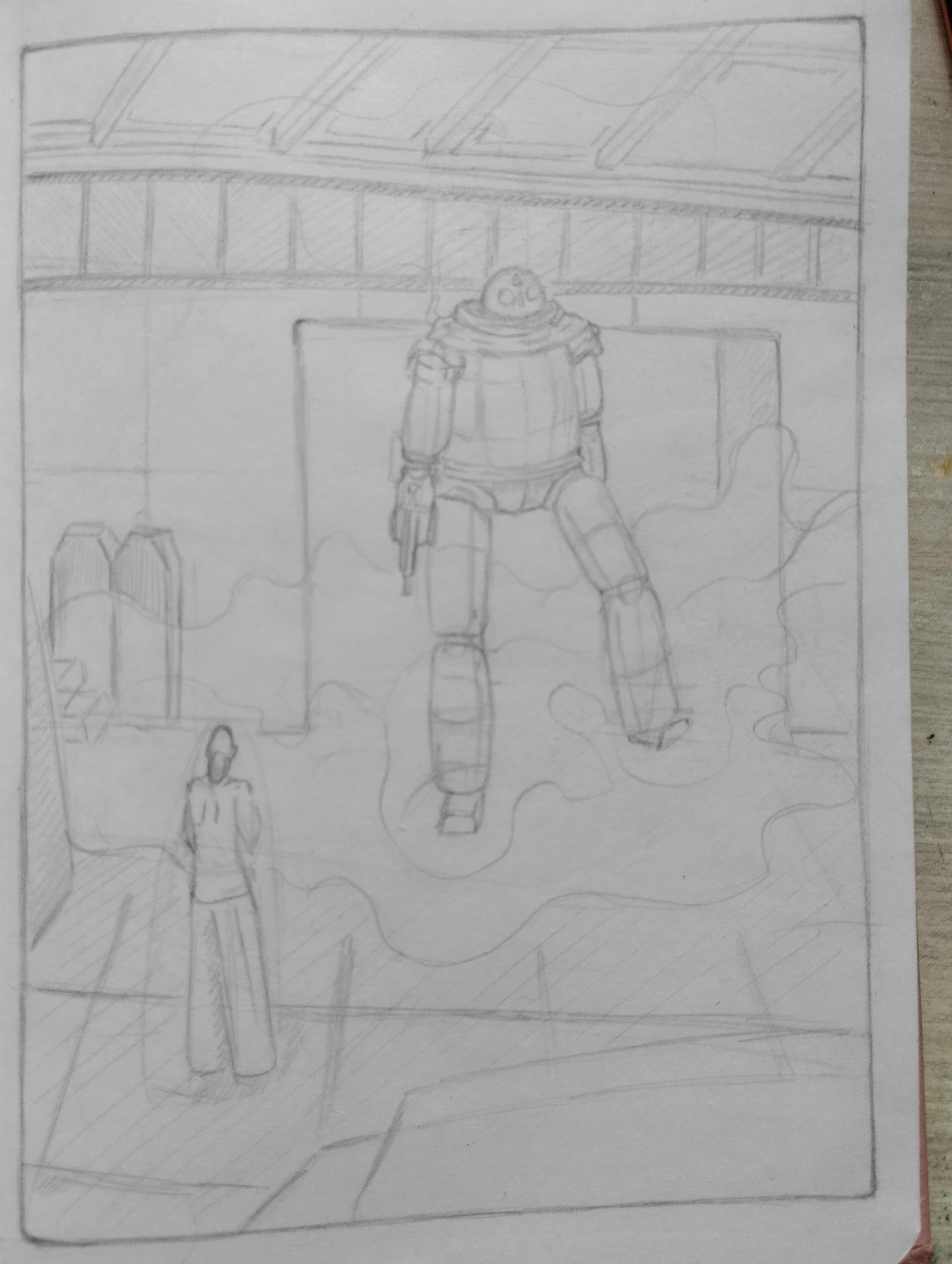 ”Анна обернулась. Сооружение из черного металла, похожее на исполинского человека не менее пятнадцати футов ростом, шагало по ангару. Ноги словно колонны, из сочленений при каждом шаге с громким шипением вырывался пар. Руки свисали ниже колен, толстые, как стволы деревьев. Голова – купол,поворачивающийся вокруг своей оси. На этом куполе сделано подобие лица из глаз-иллюминаторов, горящих желтым светом, и рта, больше похожего на оскал металлической акулы. Вместо носа – выступ трубы, откуда со свистом выходил пар. Там, где у порядочных людей находилась шляпа, у диковинного создания нелепо торчала труба дымохода. Дополнял картину видневшийся на груди круглый люк с заклепками. Вместо одной руки – пулемёт. Анна не могла не узнать – не так давно сын все уши прожужжал этим изобретением.