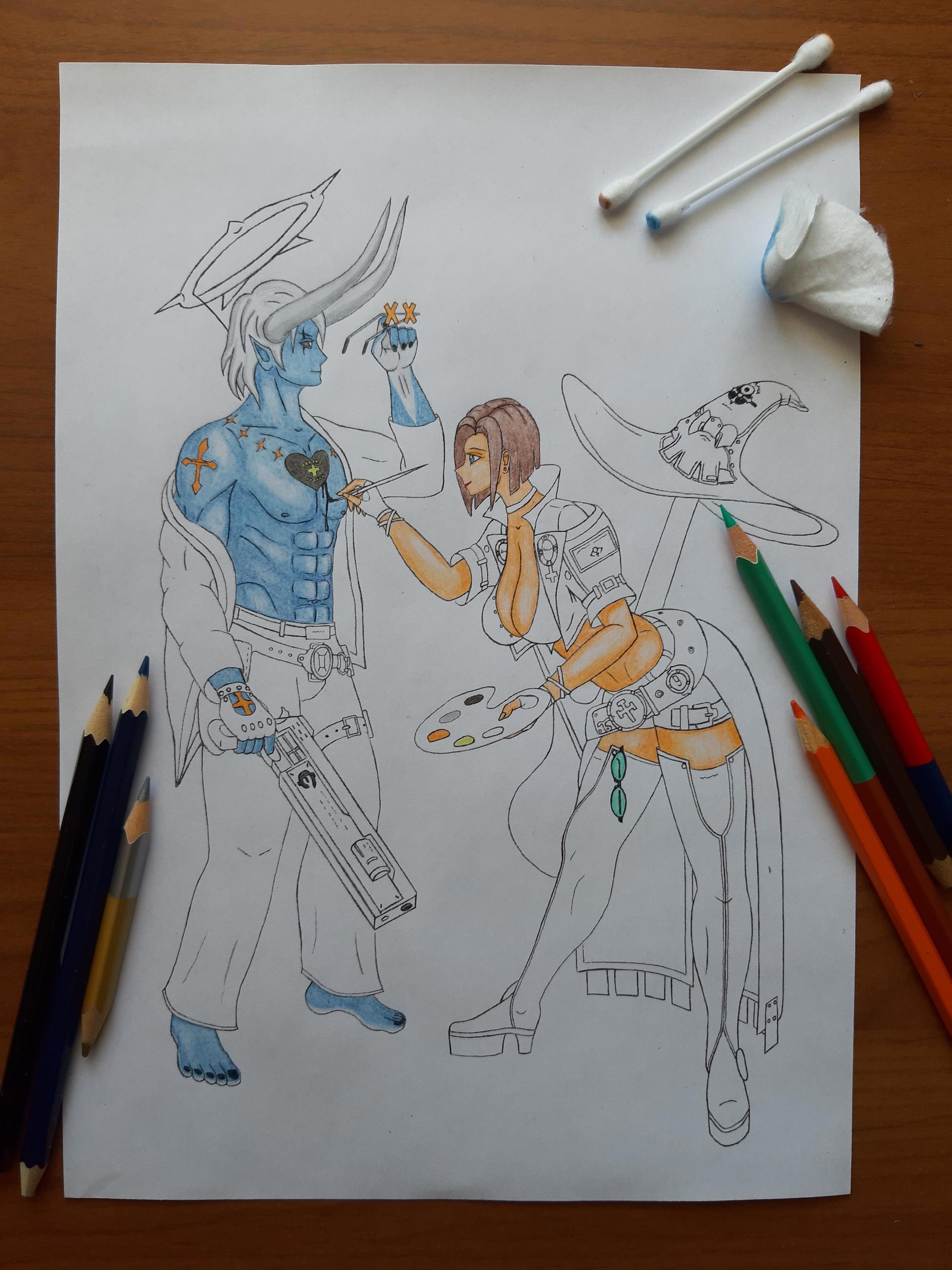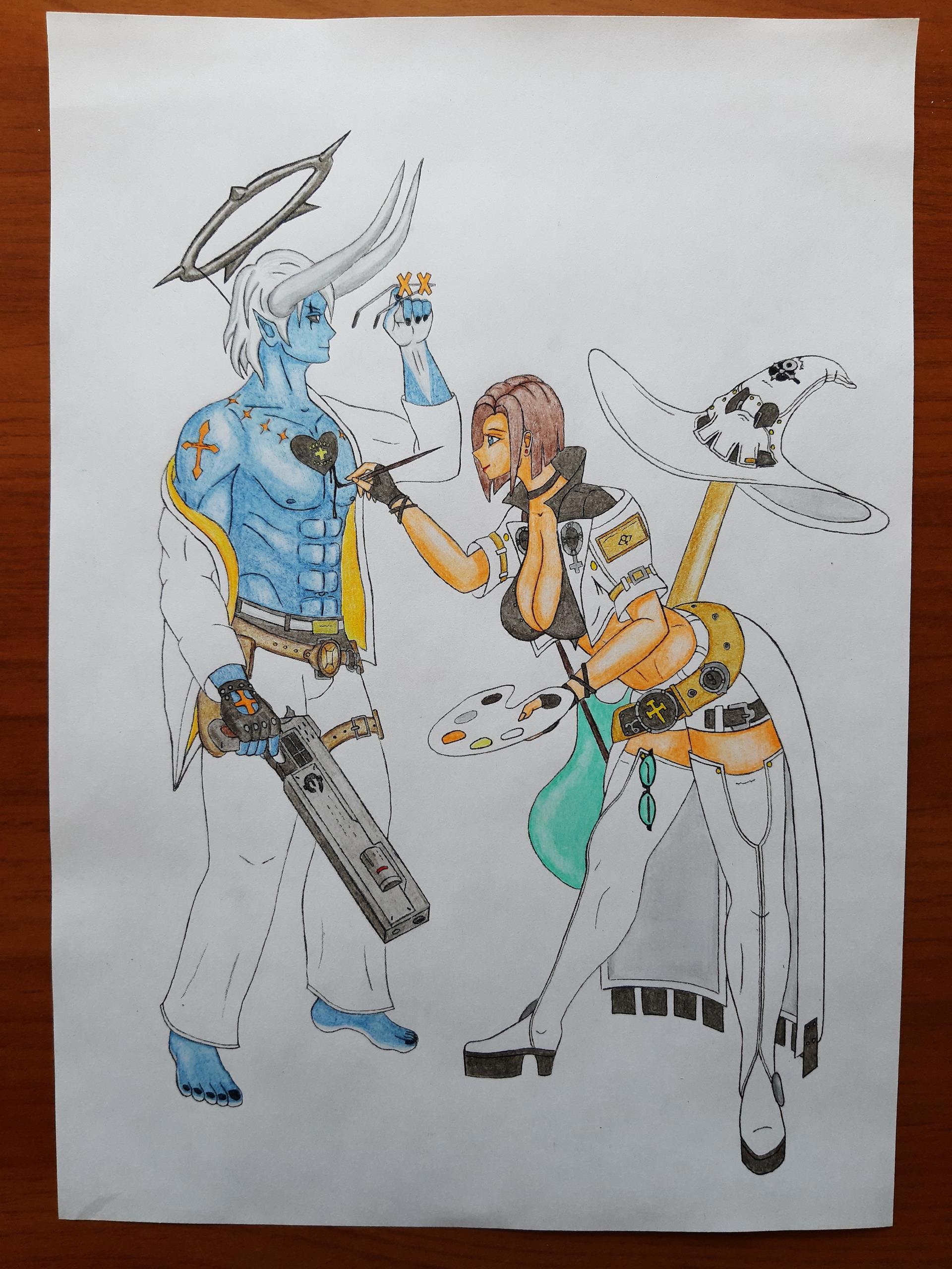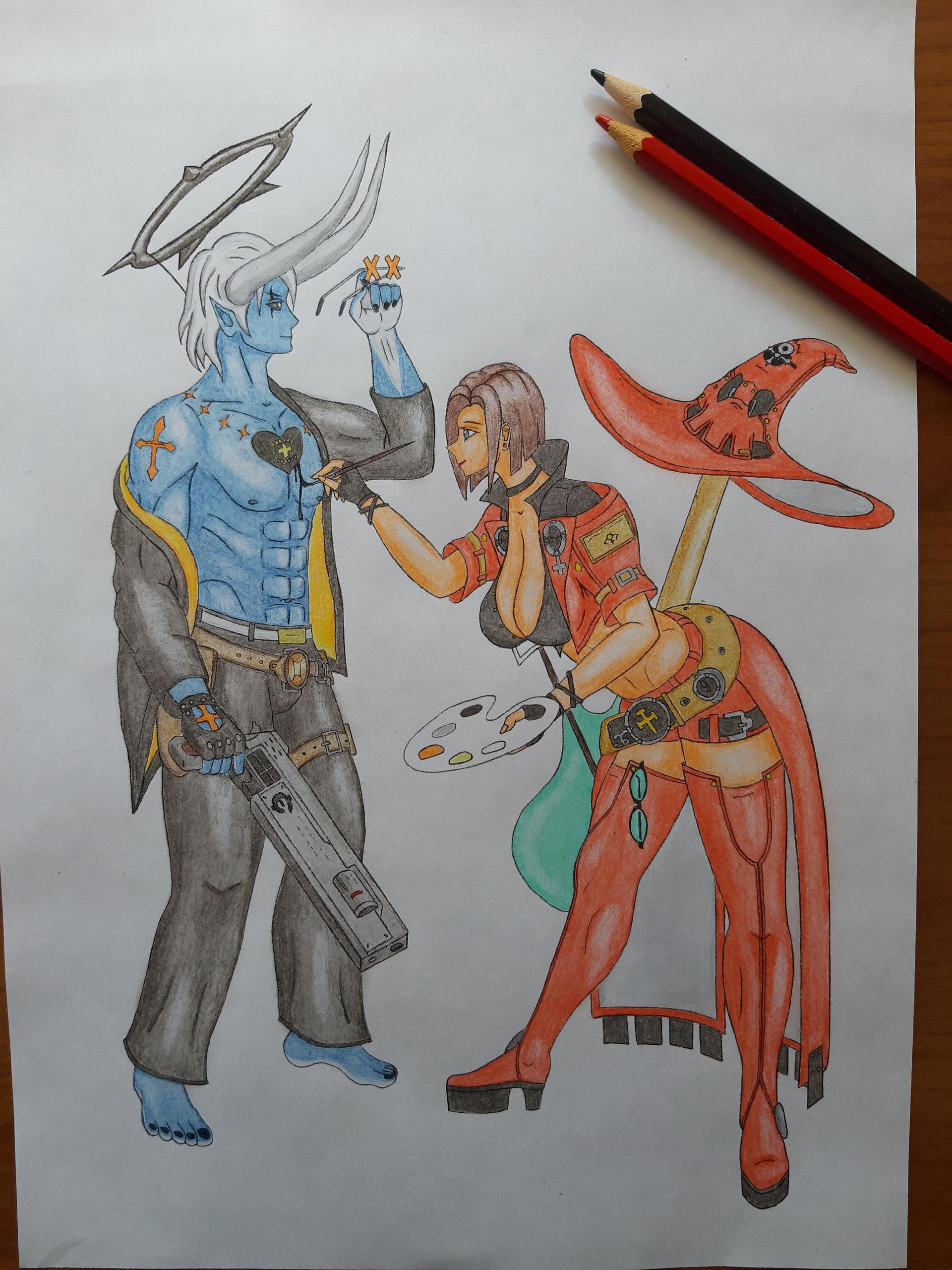 DSU x GG Автор: Demon Sanya Небольшой косплэй-кроссовер с игрой Guilty Gear Strive.Персонажи: Александр (Хэппи Хаос) и Саша (И-Но).Карандаш.Сентябрь 2024.Чёрно-белая версия... Этапы отрисовки... пародия, персонажи, фэнтези, demon sanya universe, guilty gear, демон, косплей, кроссовер, любовь 346 Пожаловаться