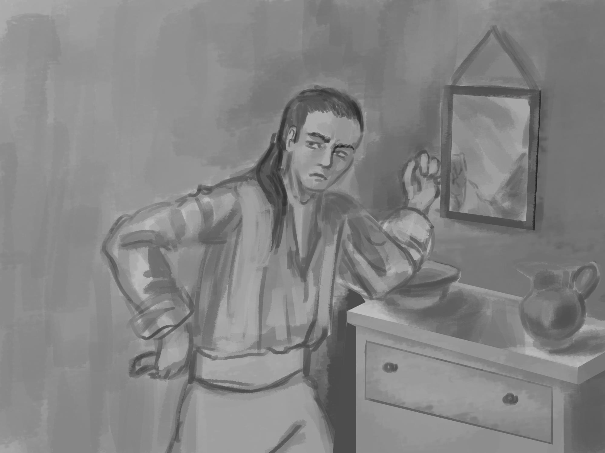 Пройдя по мрачному коридору, Эйлу задумался. Убежище предстало действительно пустым. Ни единой души. Скорее всего – все ушли на выполнение контрактов. Шагая лишь вперёд, плут внимательно читал описание внешности цели и, открыв дверь, ввалился в казарму убежища. Приметив зеркало, Хартинсон подошёл к нему. Дверца захлопнулась. Прожигающий взгляд был устремлён в глубь души.