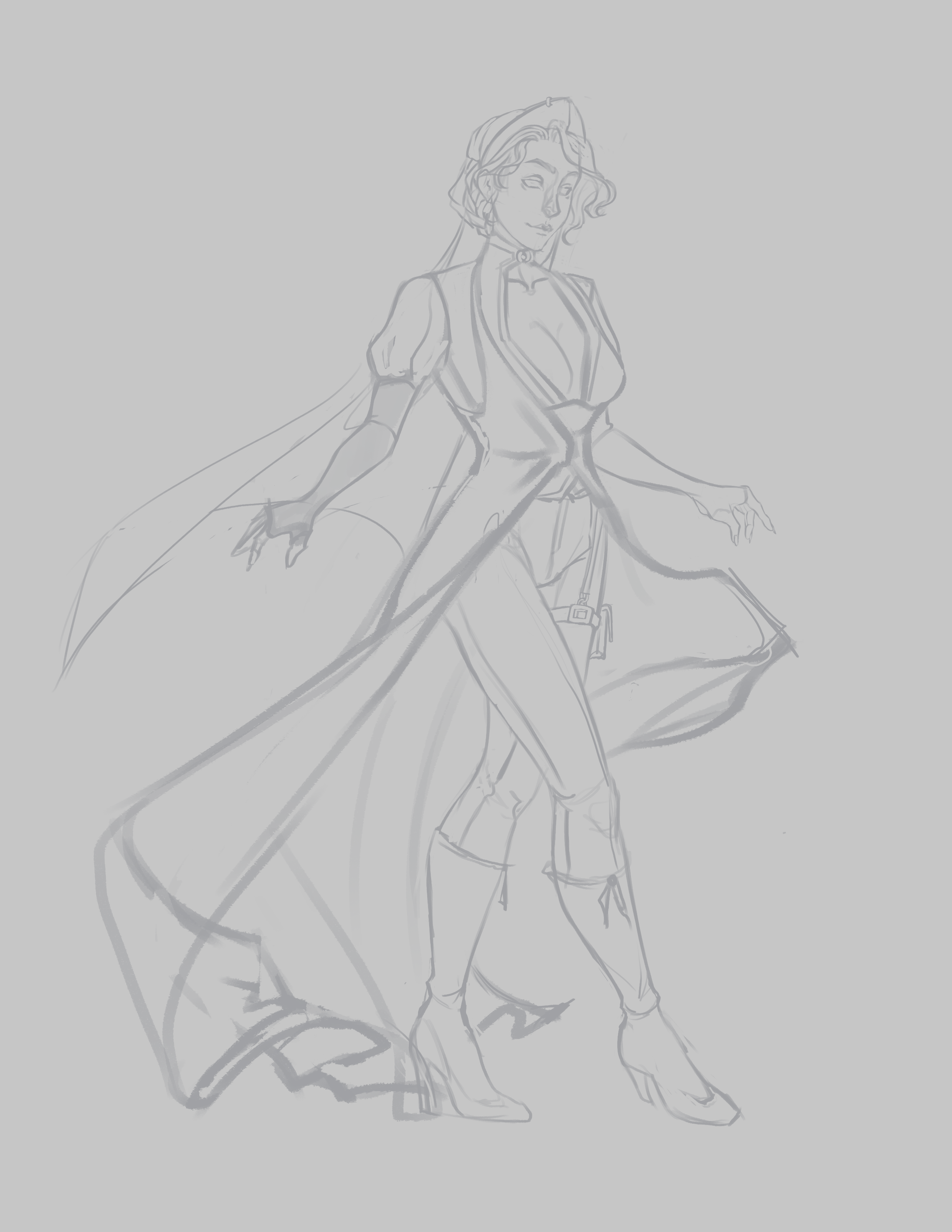 Идея ее образа пришла довольно необычно: я смотрела подборку фотографий в стиле темной славянской культуры (черные платья, руны и прочее) и вот прям залипла на кокошники. Рисовать большой кокошник я не хотела, поэтому посмотрела еще - увидела на маркетплейсе такой вот современный ободок с подьемом - он и стал отправной точкой для всего образа. Думаю, она бы не плох вписалась в какое-нибудь темной фэнтази как наместница (да-да вышла замуж по расчету, а муж ее любви к власти не пережил)