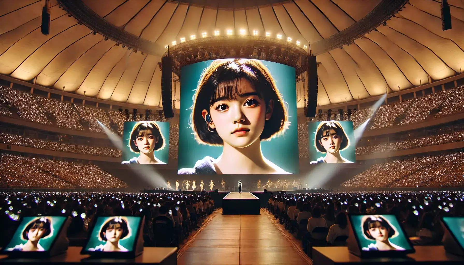 ( над внимательно вслушивающимся в мелодию и слова стадионом, на японском языке, звучит песня, знакомая почти всем жителям СССР другого мира)