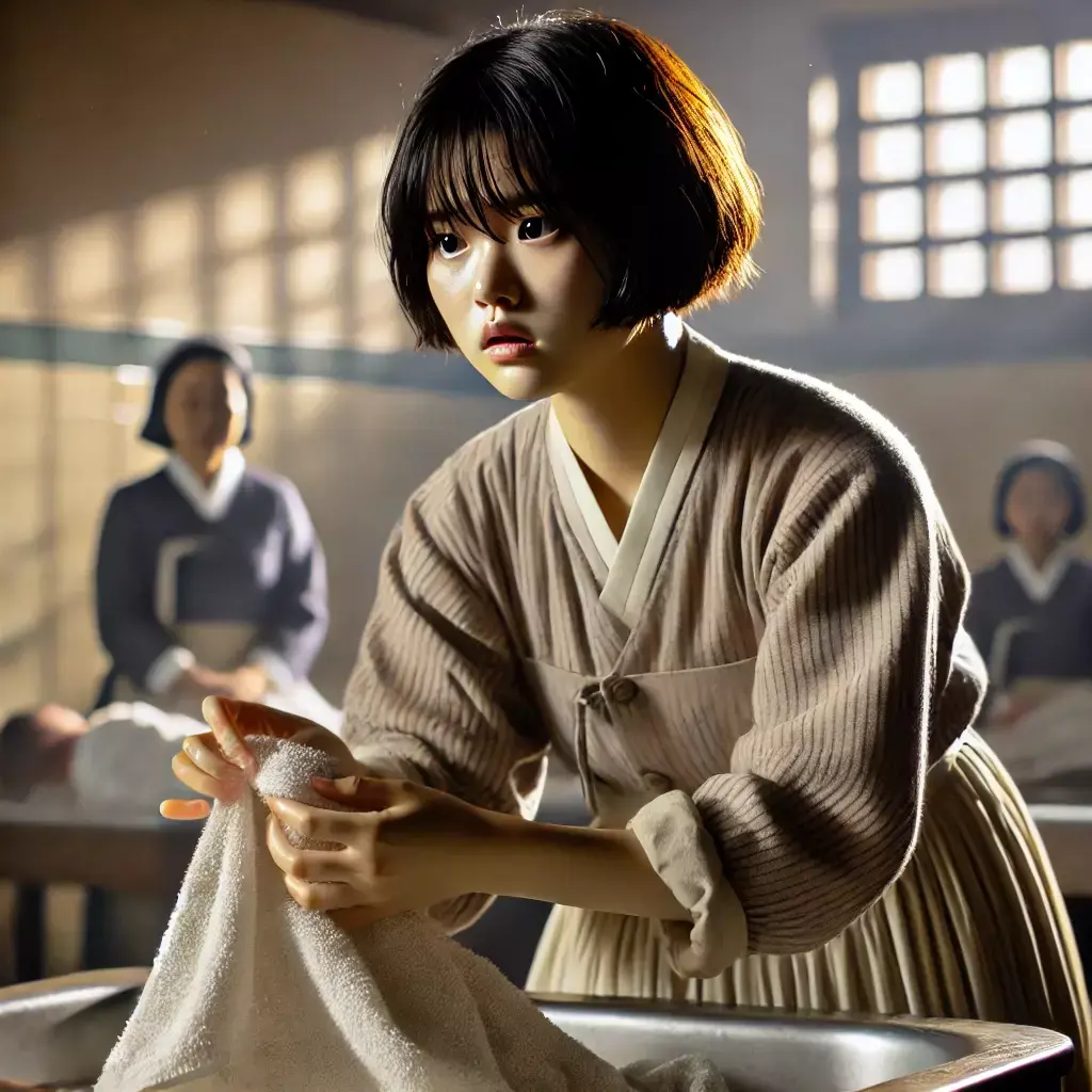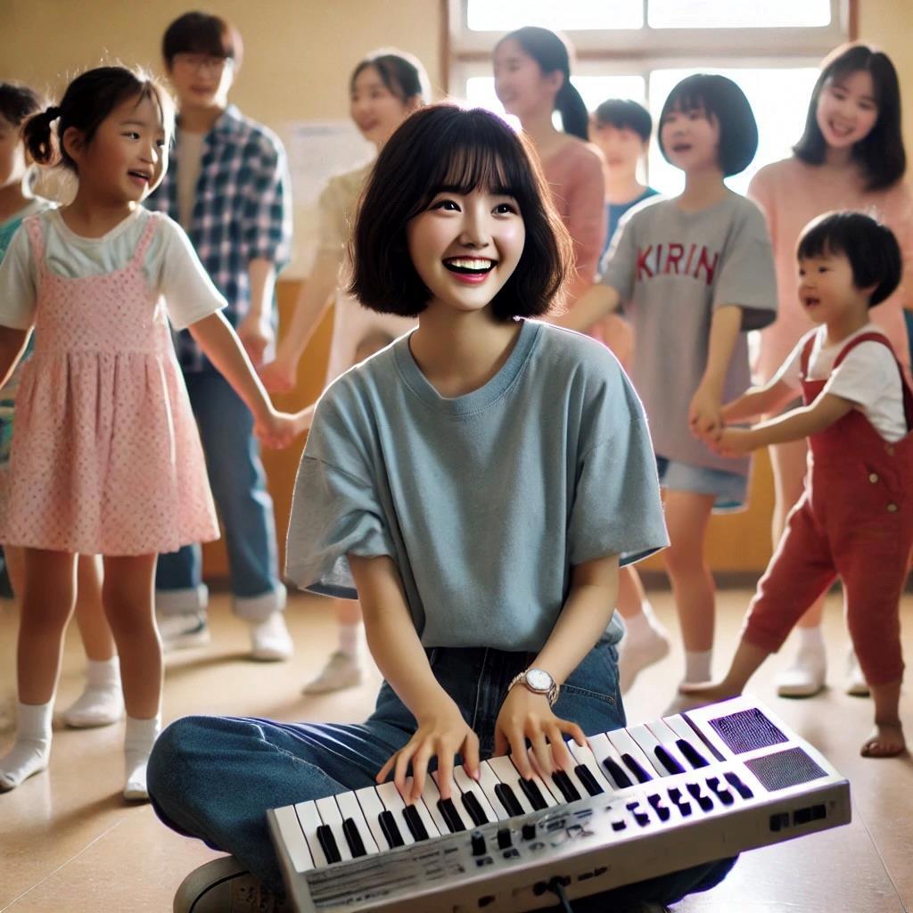 Настоятельница заглядывает в комнату, из которой раздаются музыка и громкие радостные детские визги и смех. В комнате царит веселье. Девочки из «Кирин», возвышаясь минаретами, танцуют вместе с окружившими их маленькими детьми, а ЮнМи, в углу комнаты, с явным удовольствием играет им всем на простеньком синтезаторе, приткнувшемся у стены.